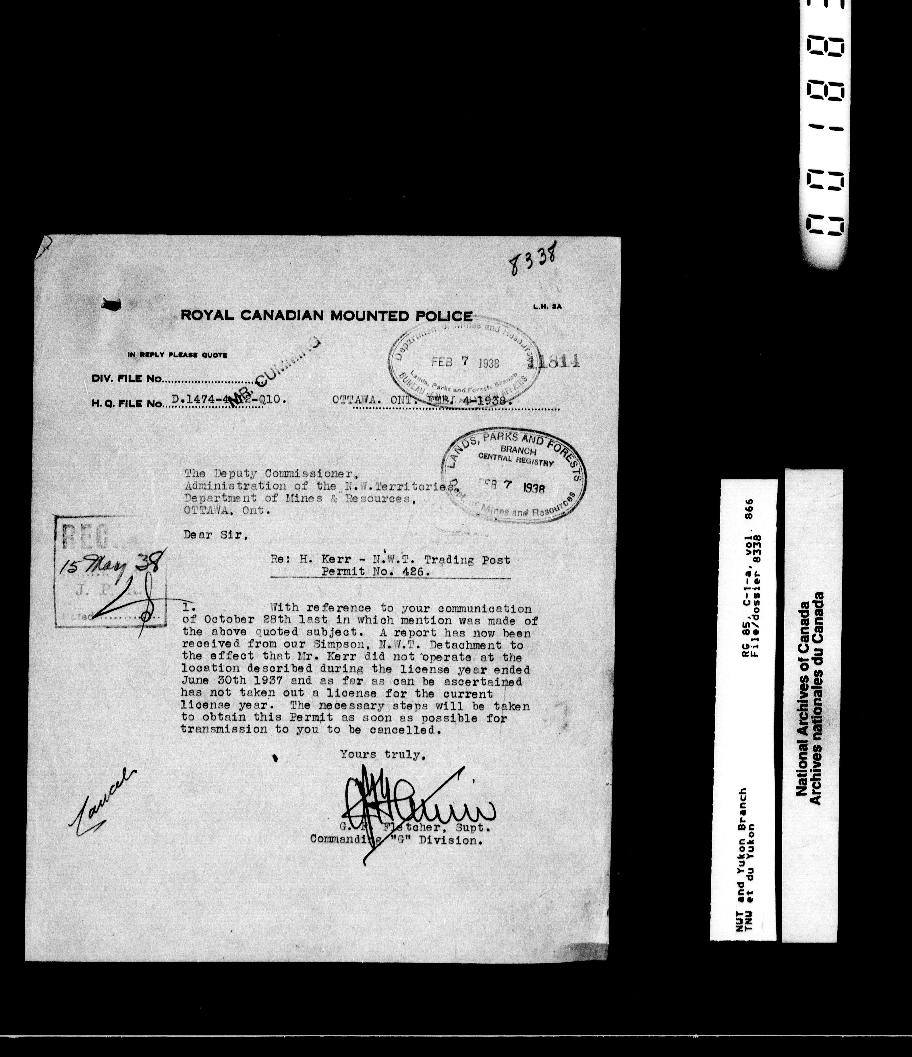 Department of Indian Affairs : Northwest Territories and Yukon Branch, Central Registry files - 13359