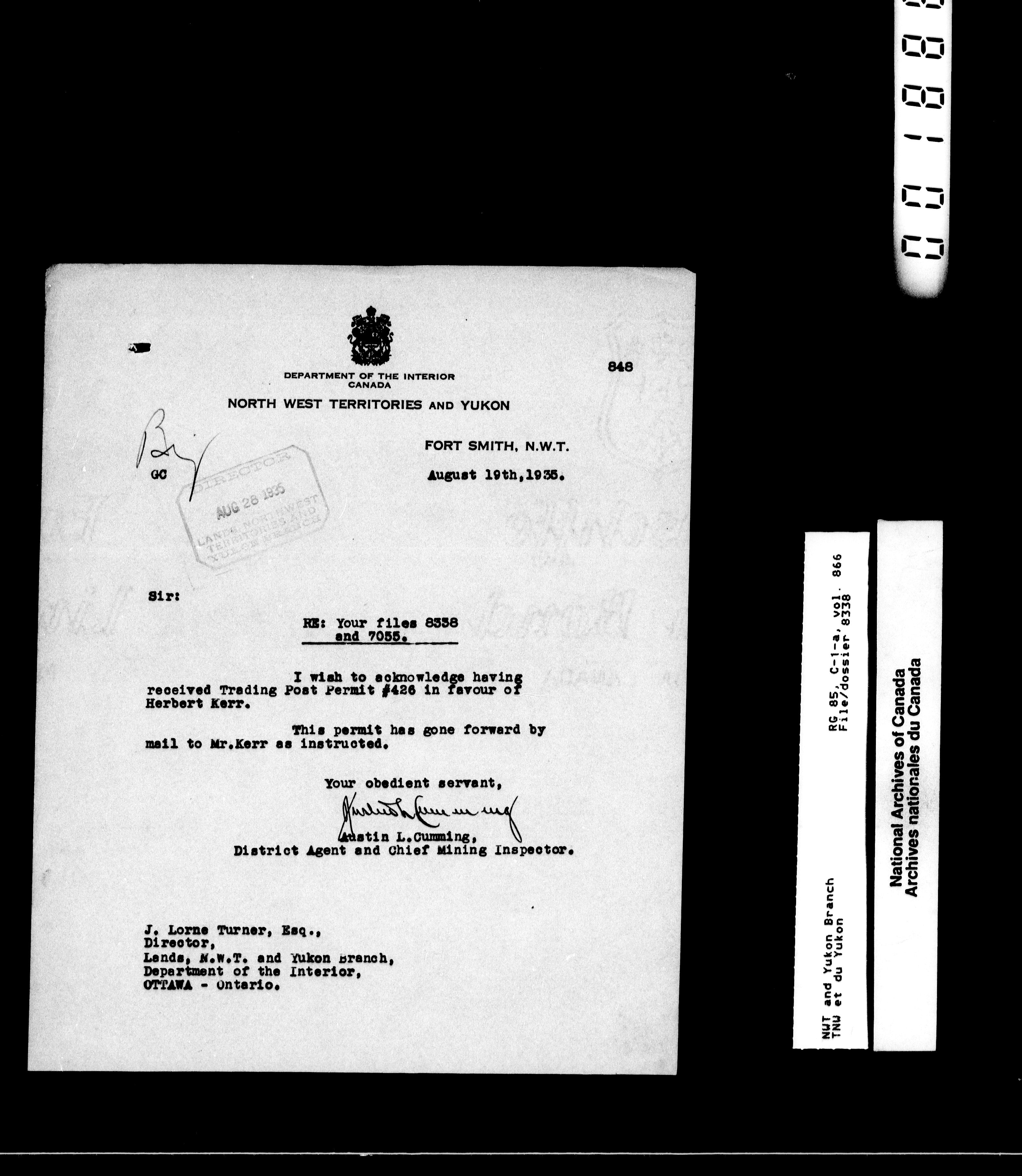 Department of Indian Affairs : Northwest Territories and Yukon Branch : T-13359