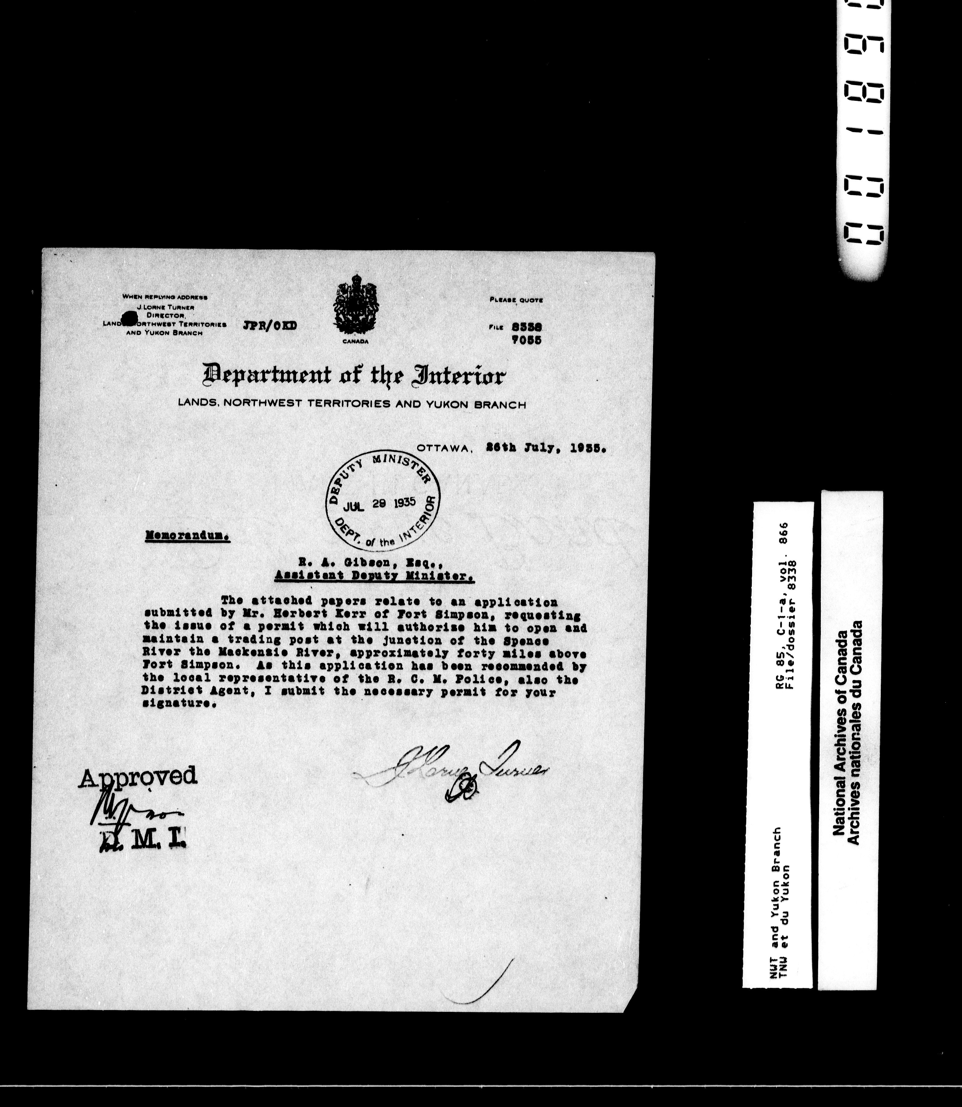 Department of Indian Affairs : Northwest Territories and Yukon Branch : T-13359