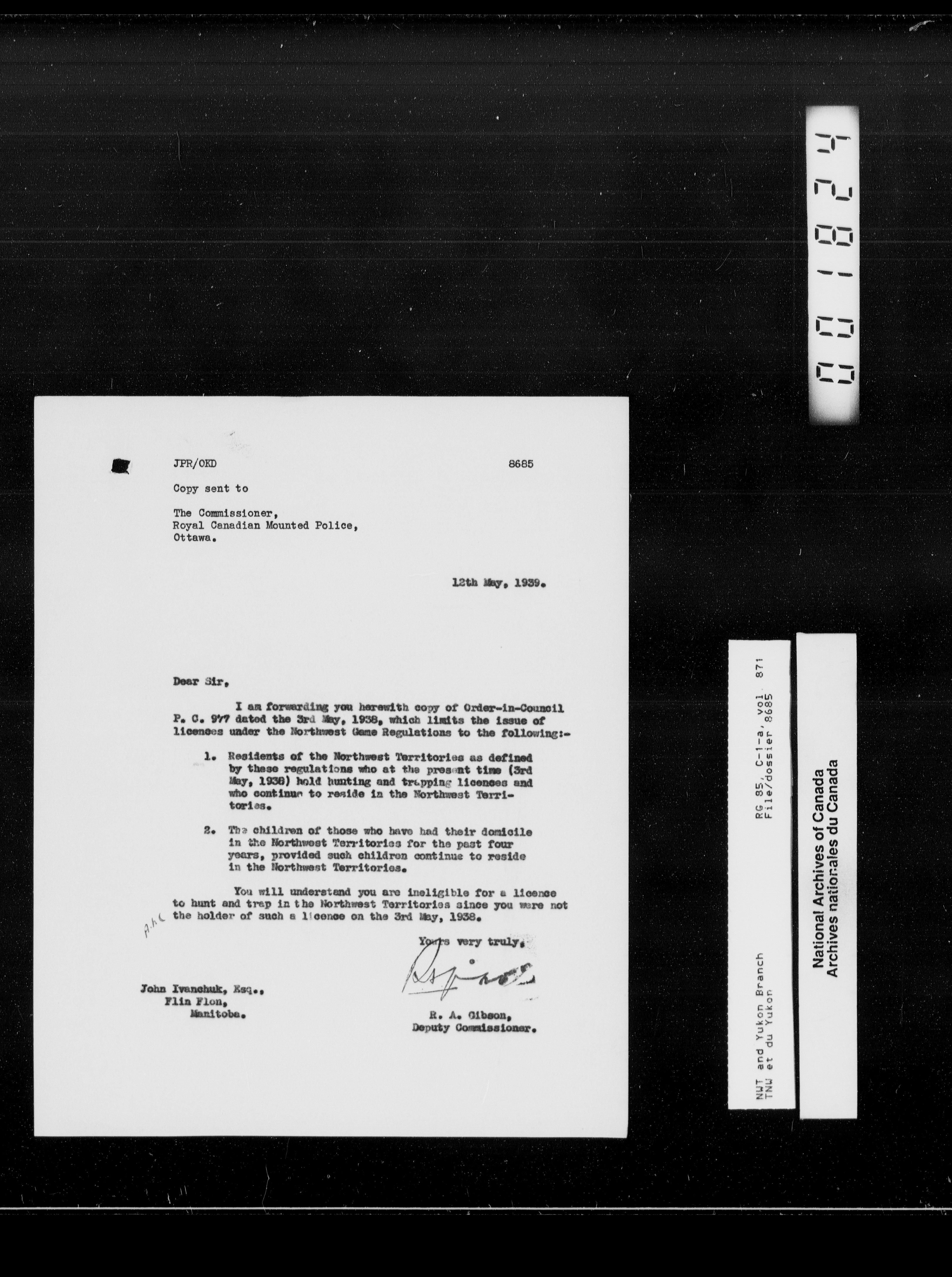 Department of Indian Affairs : Northwest Territories and Yukon Branch, Central Registry files - T-13362