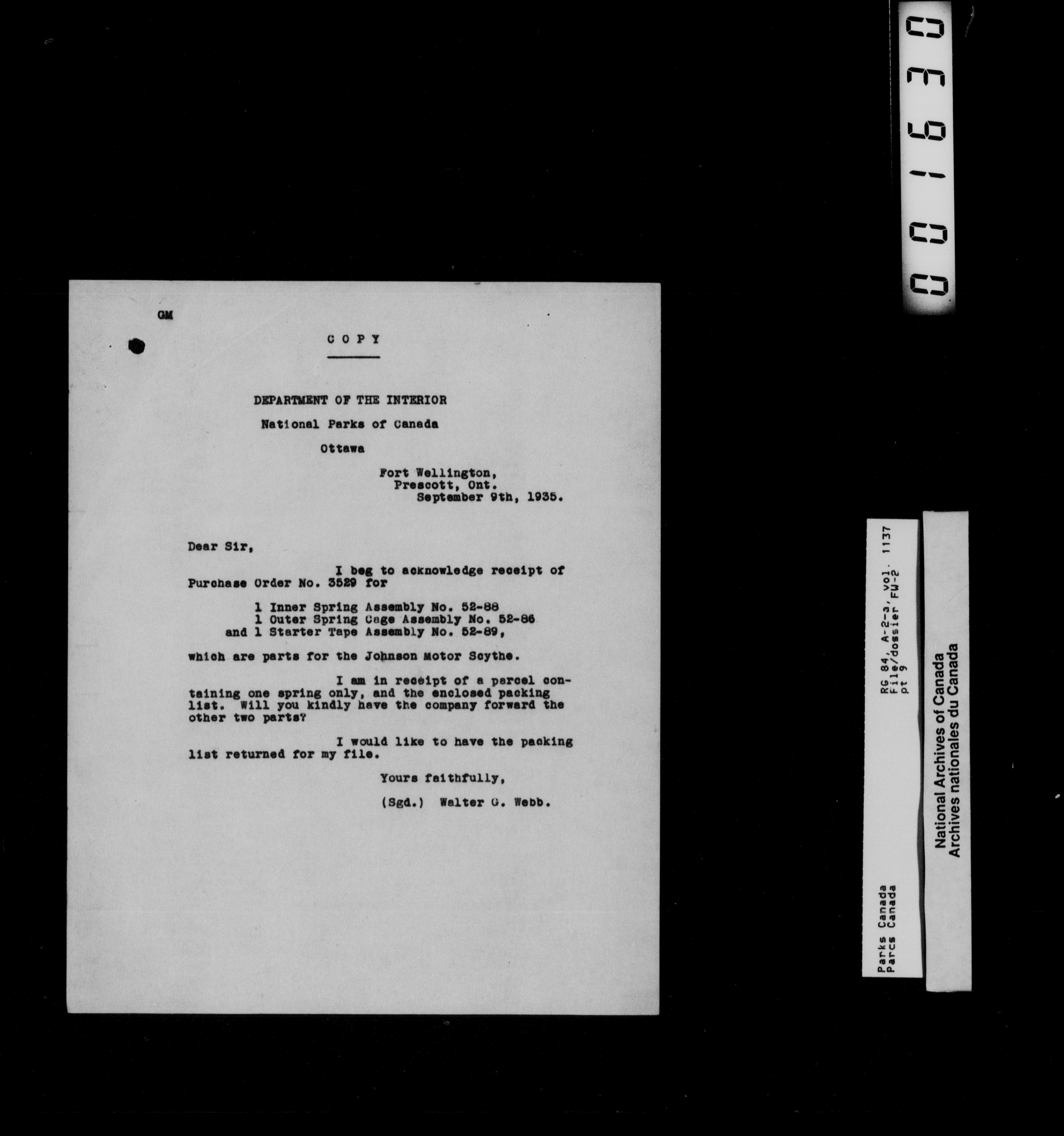 Department of Canadian Heritage, Canadian Parks Service : Park/subject classification system - 13487