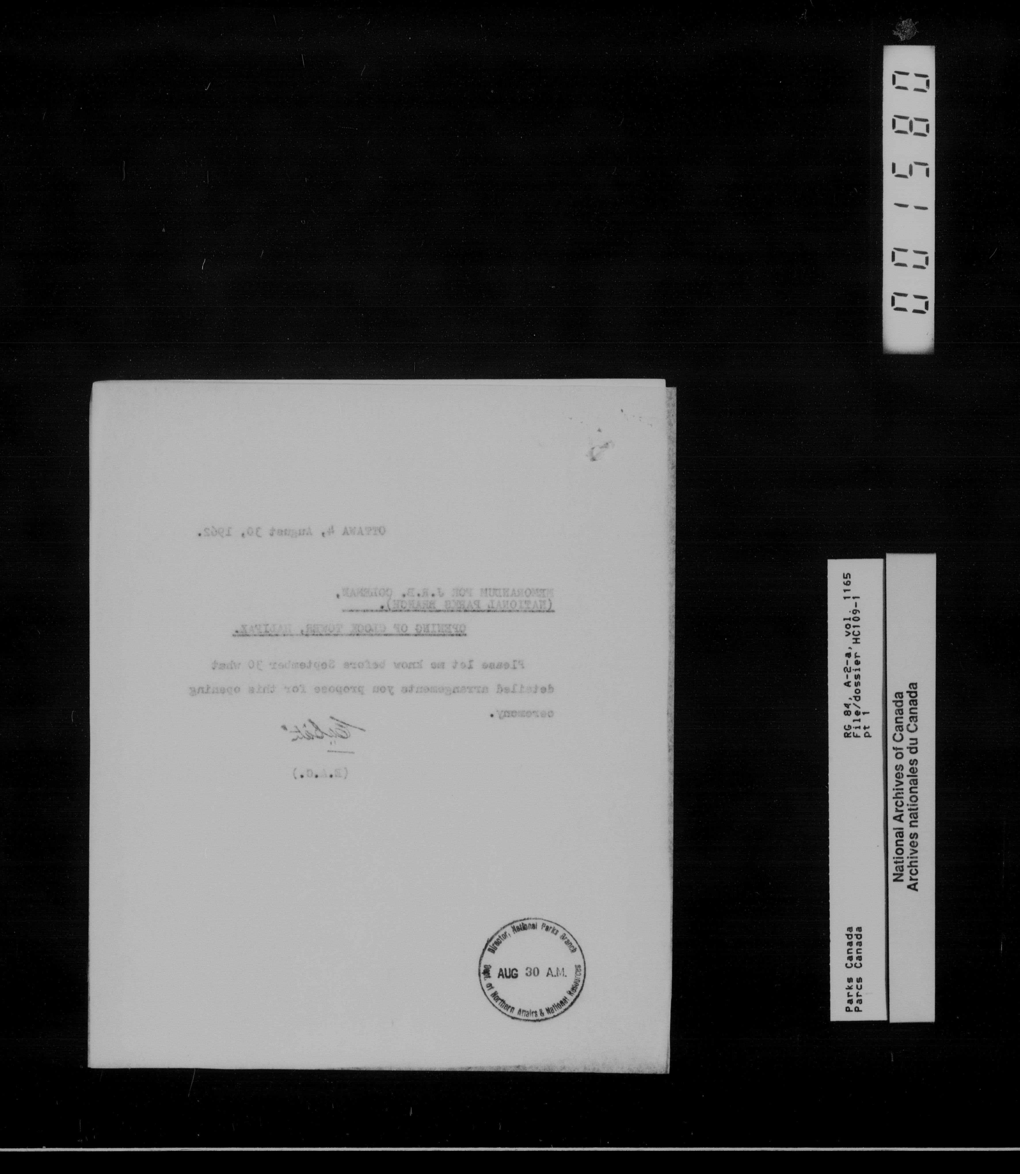 Department of Canadian Heritage, Canadian Parks Service : Park/subject classification system - 13496