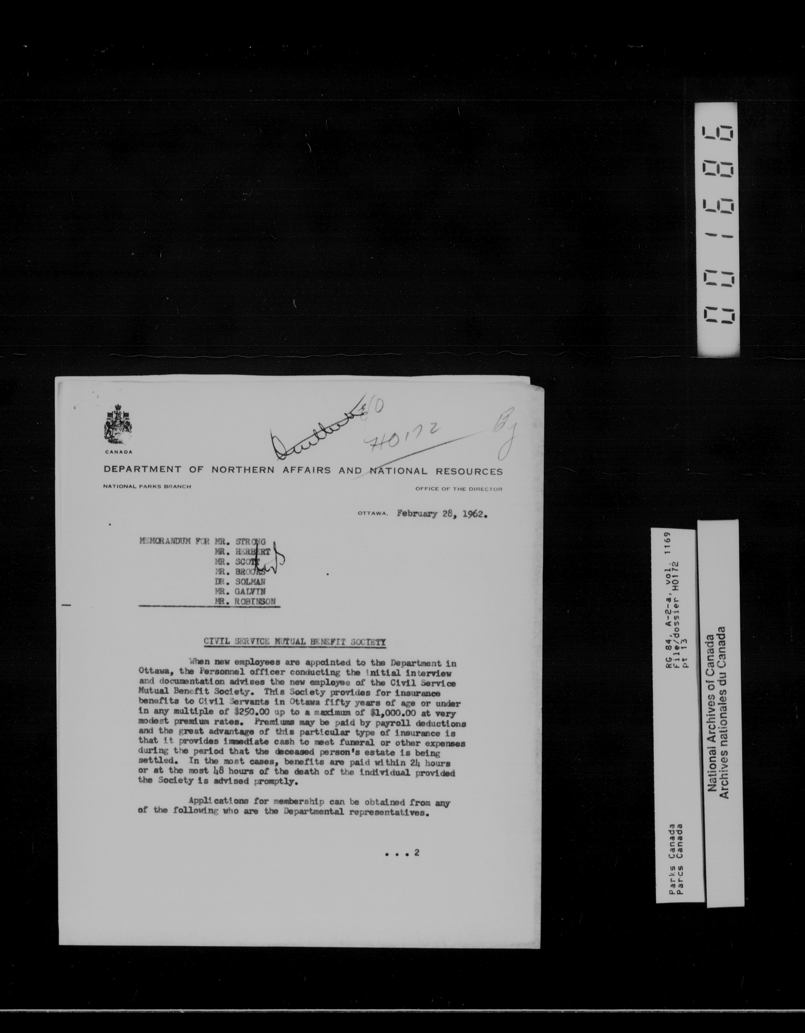 Department of Canadian Heritage, Canadian Parks Service : Park/subject classification system - 13499