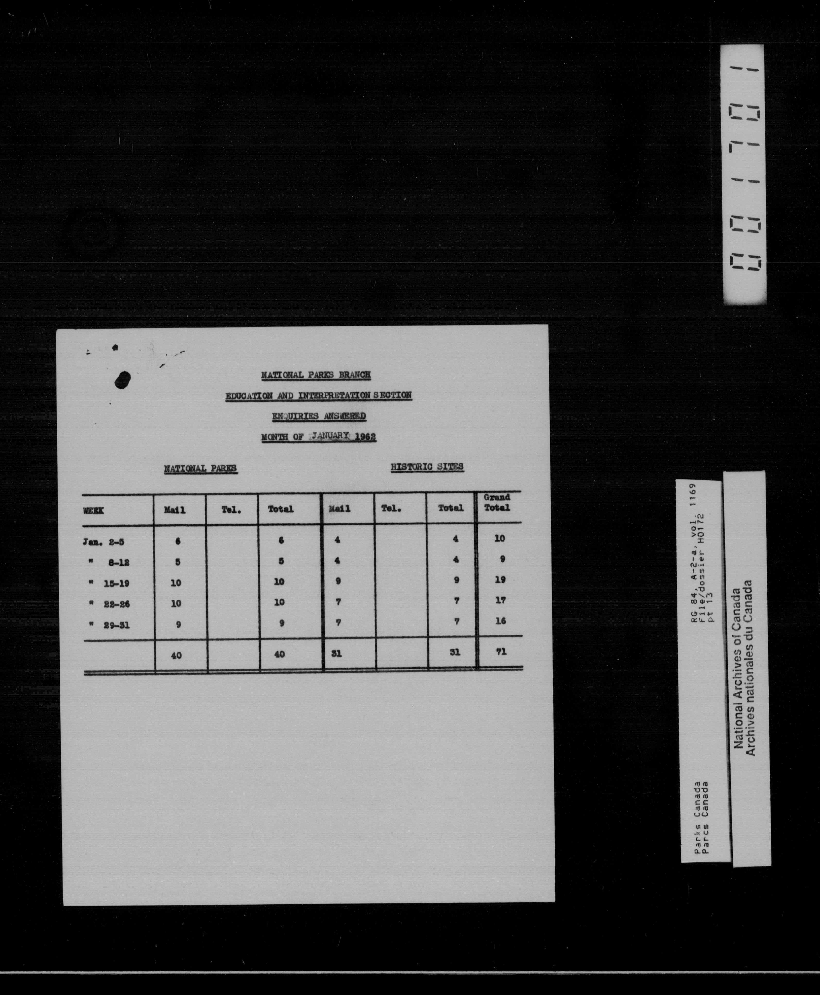 Department of Canadian Heritage, Canadian Parks Service : Park/subject classification system - 13499