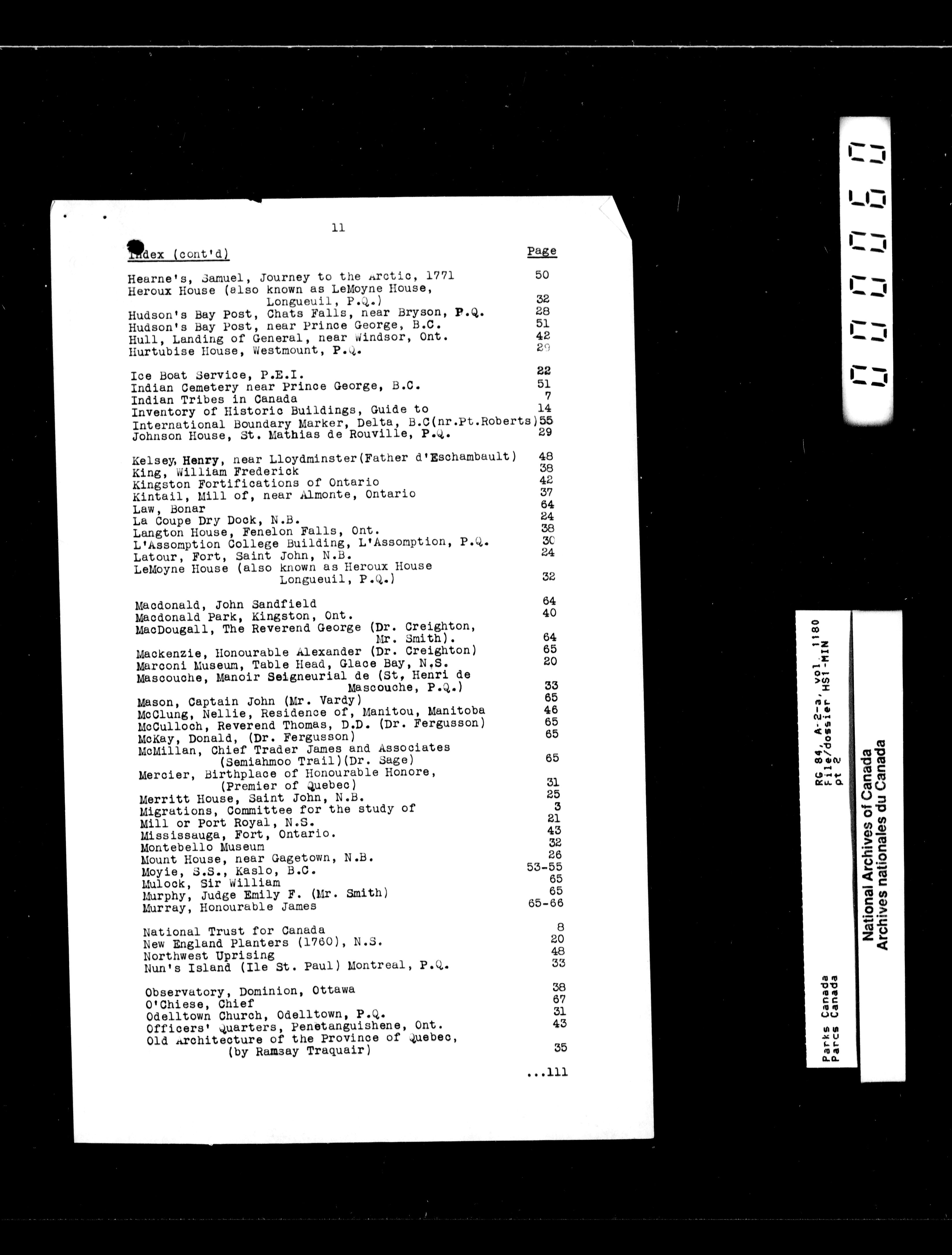 Department of Canadian Heritage, Canadian Parks Service : Park/subject classification system - 13510