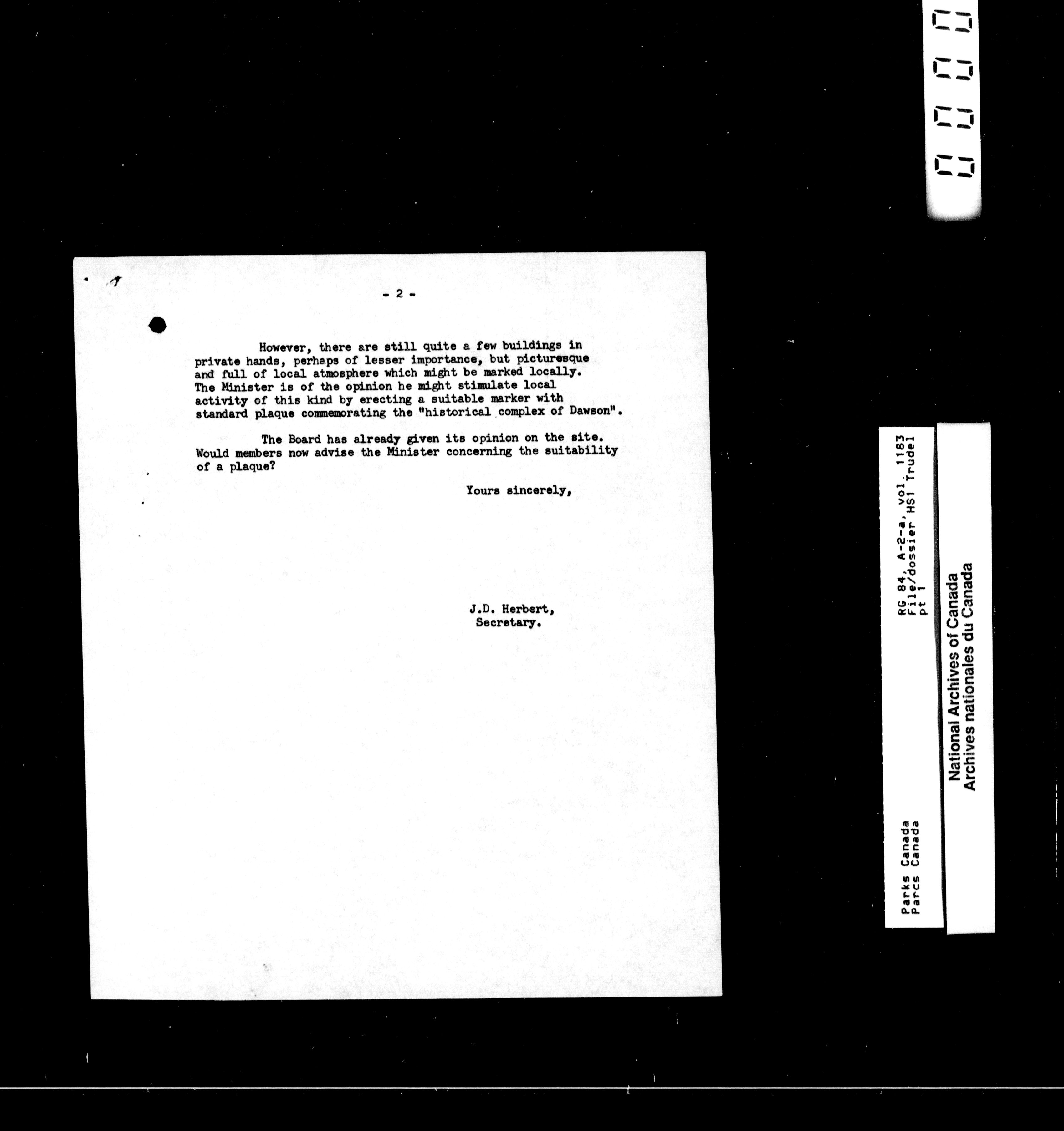 Department of Canadian Heritage, Canadian Parks Service : Park/subject classification system - 13513
