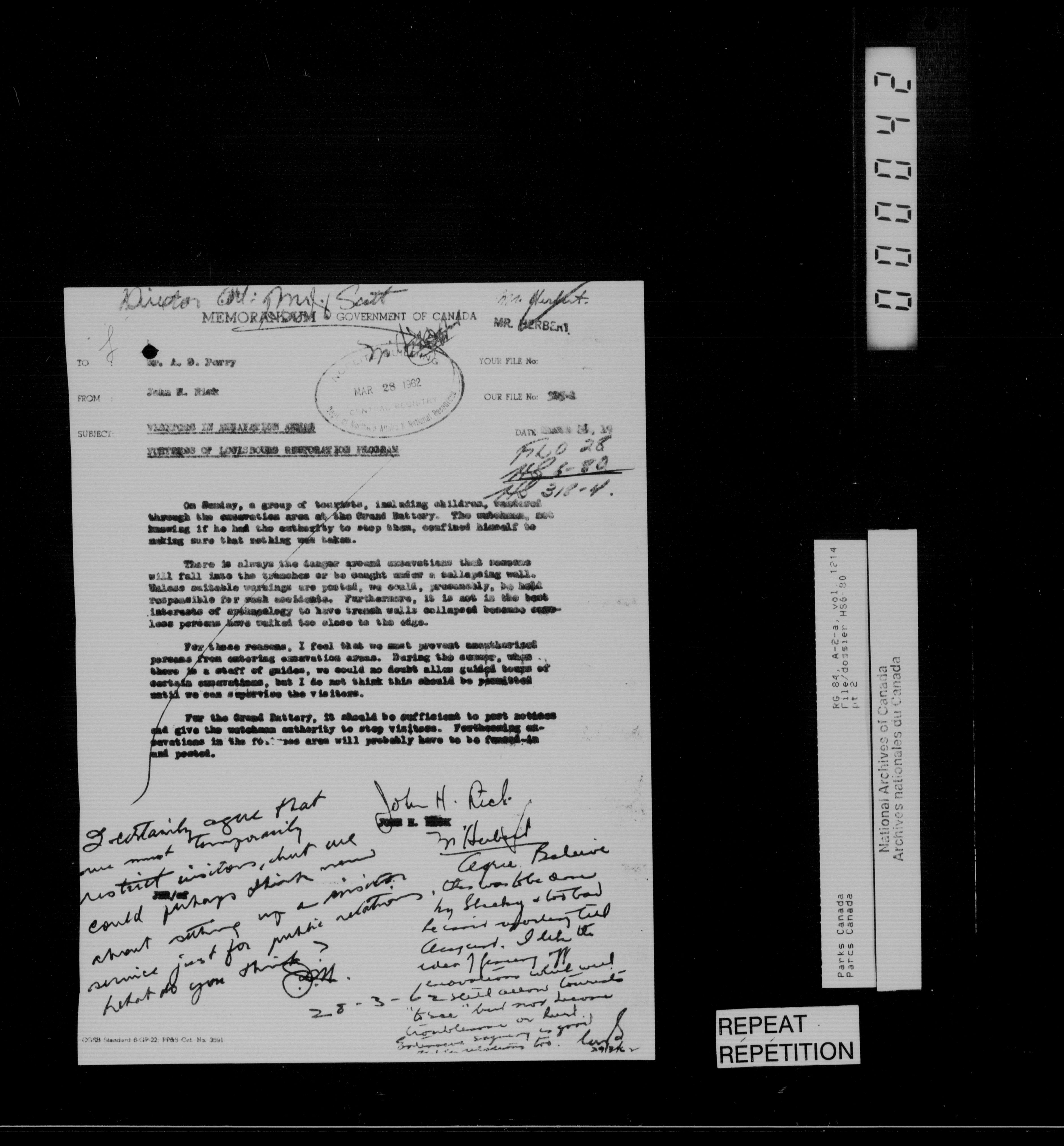 Department of Canadian Heritage, Canadian Parks Service : Park/subject classification system : T-13541