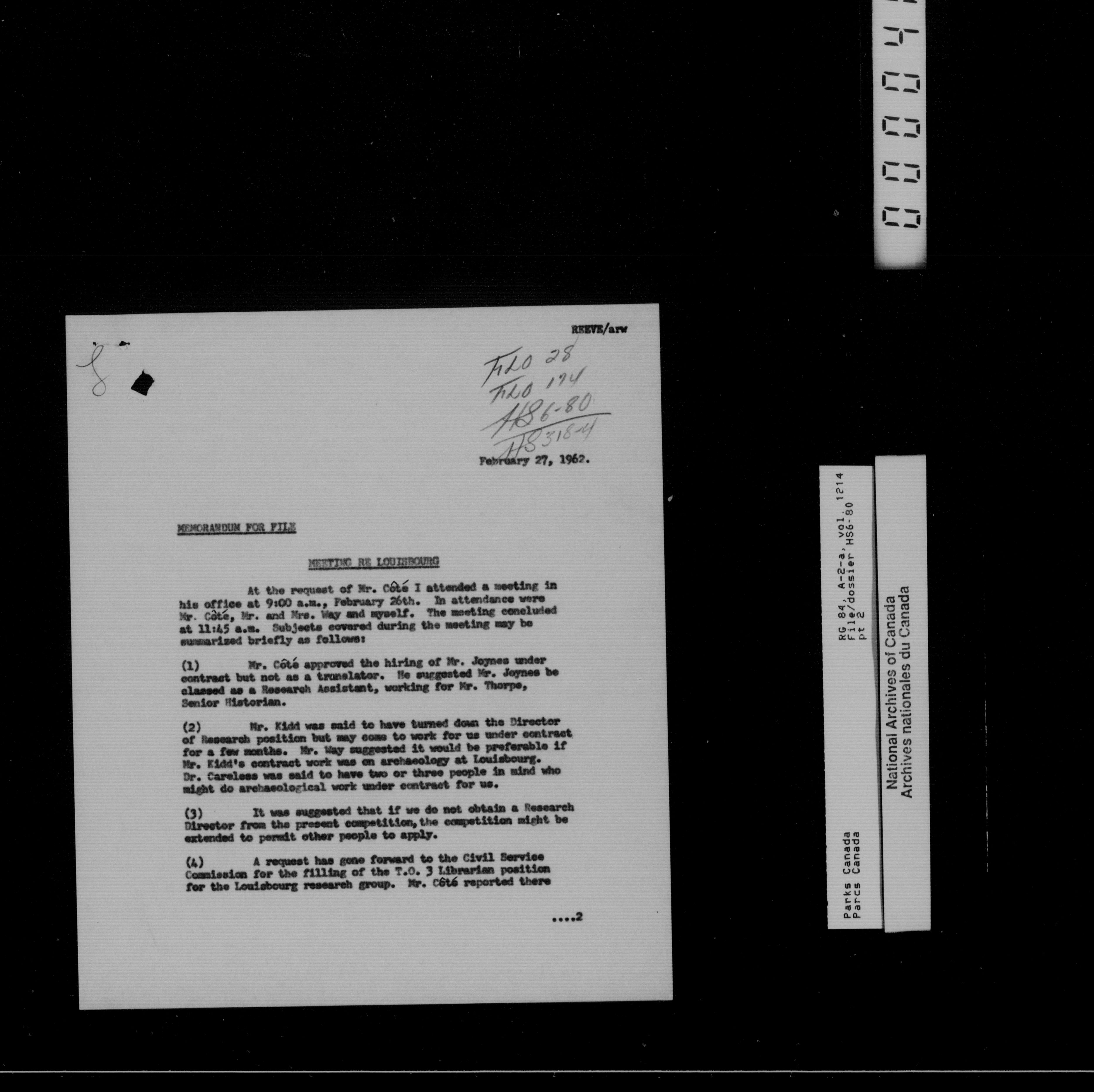 Department of Canadian Heritage, Canadian Parks Service : Park/subject classification system : T-13541