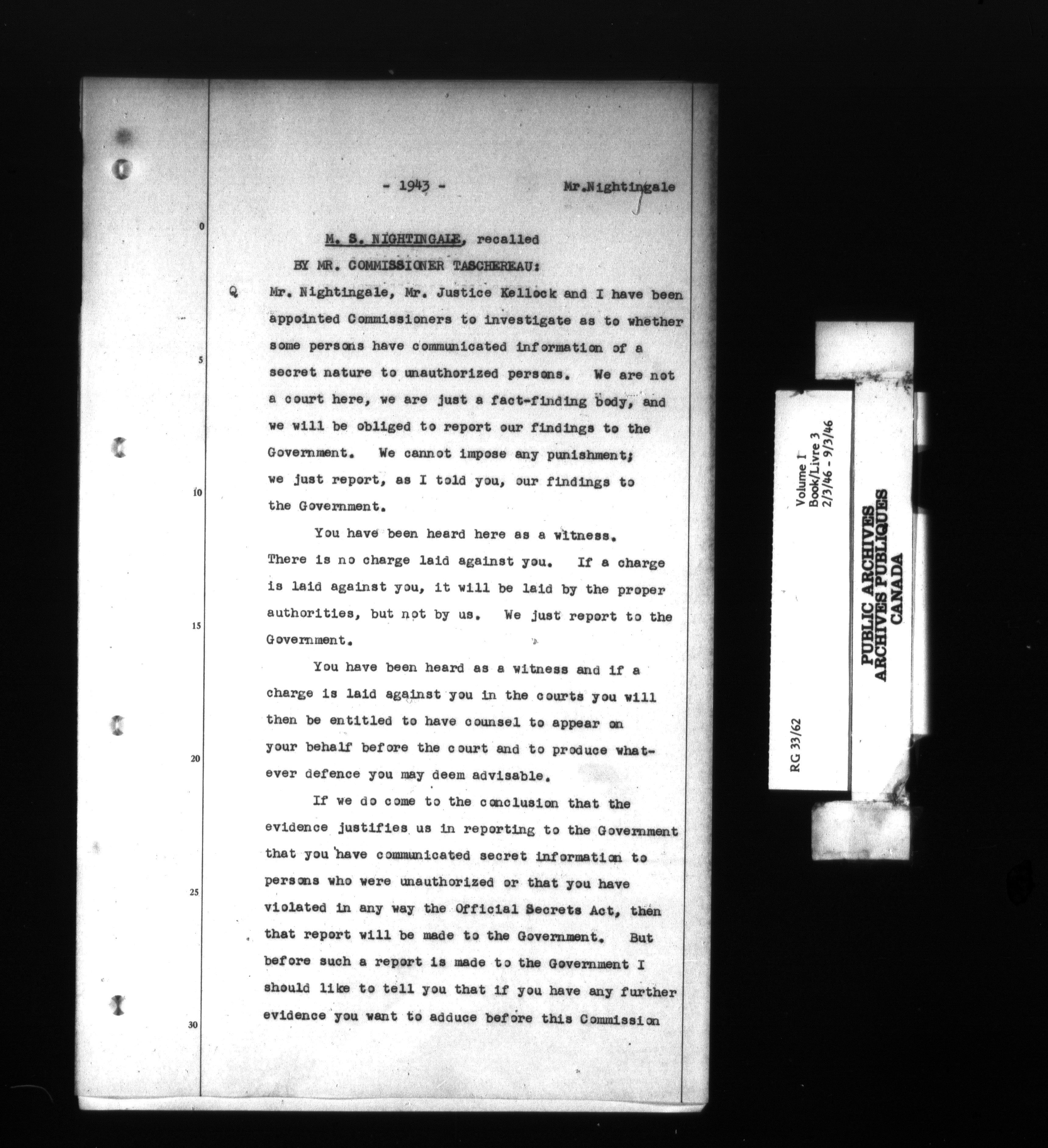 Royal Commission to Investigate the Facts Relating to and the Circumstances Surrounding the Communication, by Public Officials and Other Persons in Positions of Trust, of Secret and Confidential Information to Agents of a Foreign Power fonds : T-1368