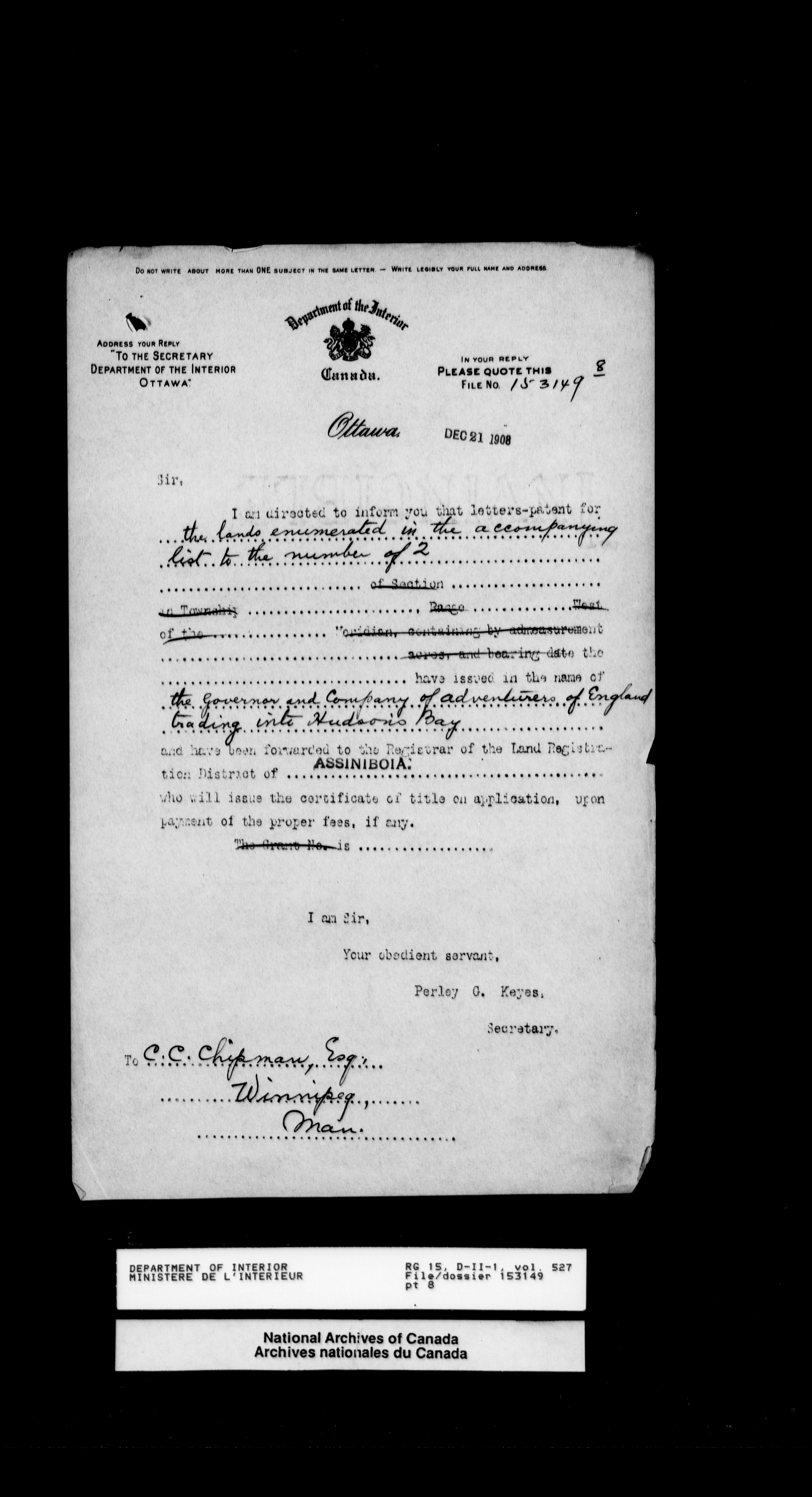 Central registry subject files created by the Dominion Lands Branch - 13786