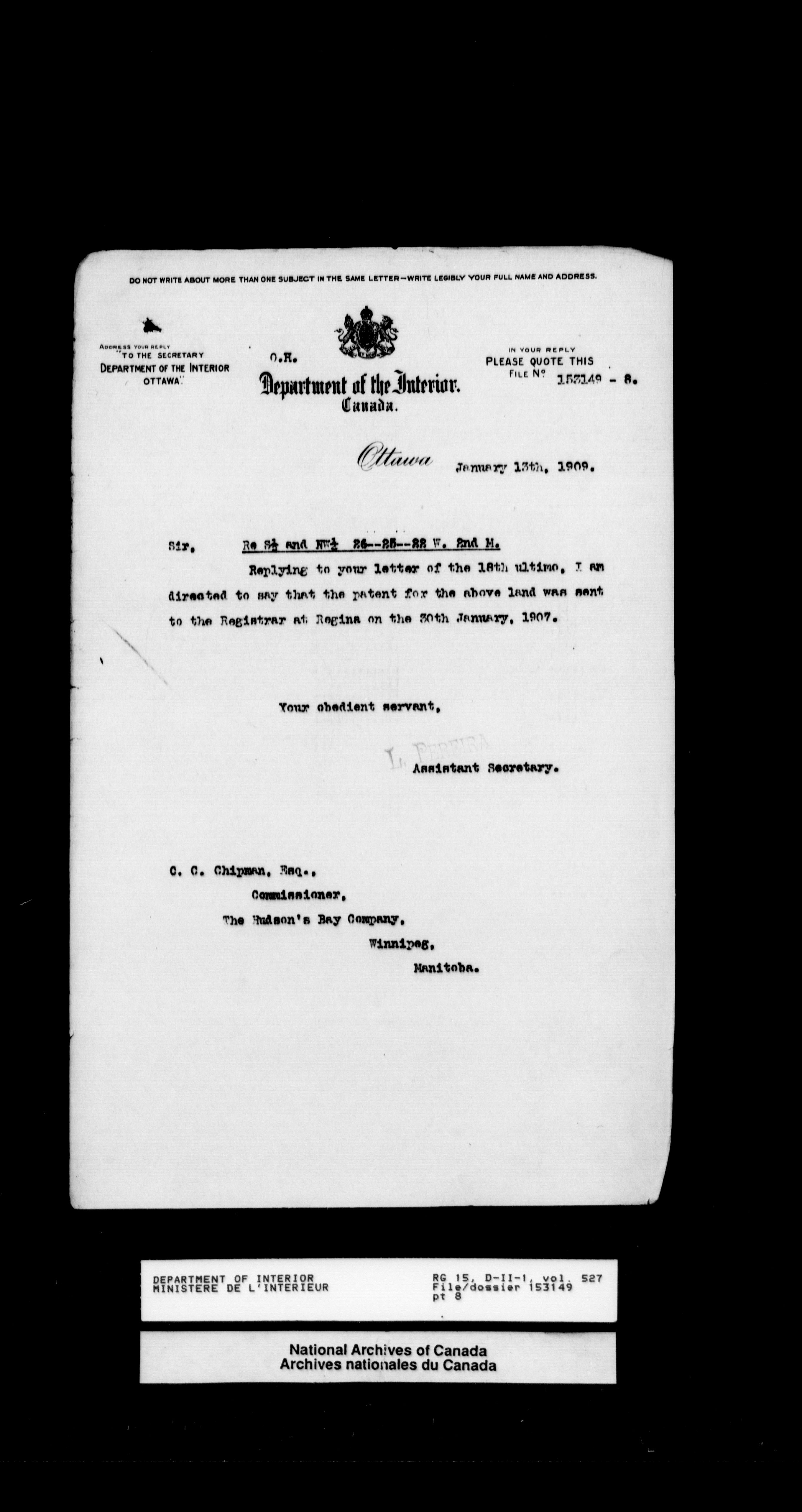 Central registry subject files created by the Dominion Lands Branch - 13786