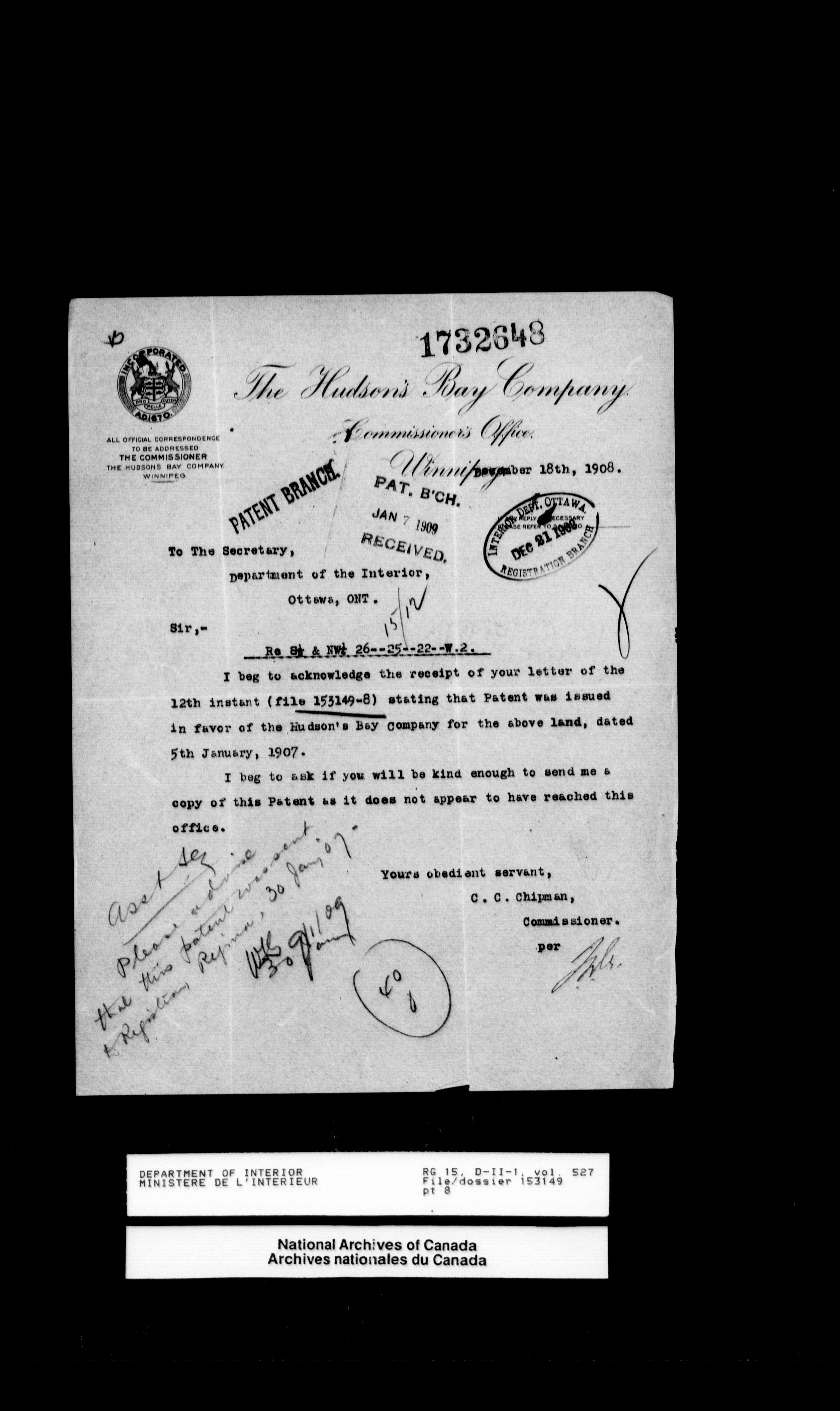 Central registry subject files created by the Dominion Lands Branch - 13786