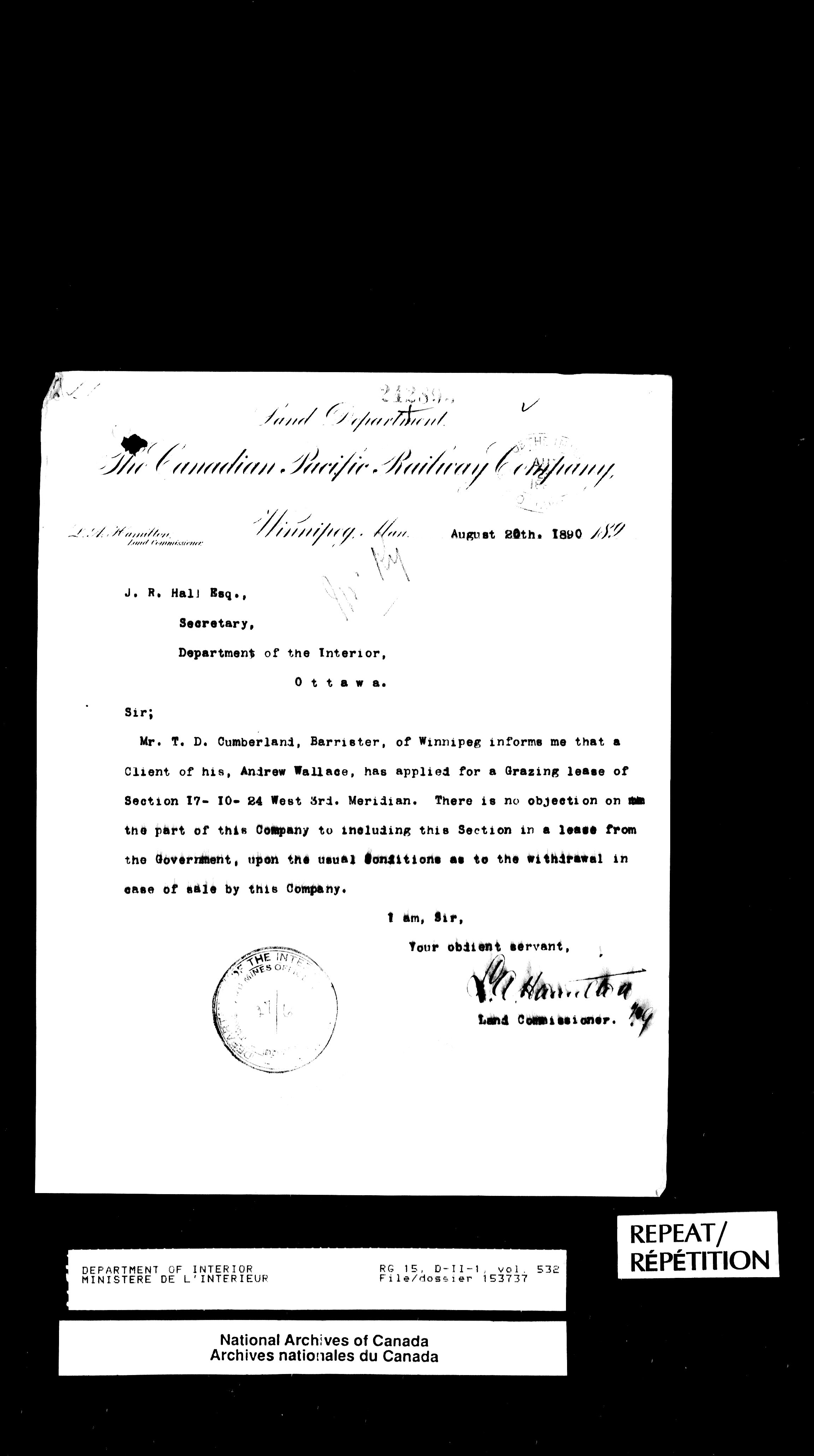 Central registry subject files created by the Dominion Lands Branch - 13791