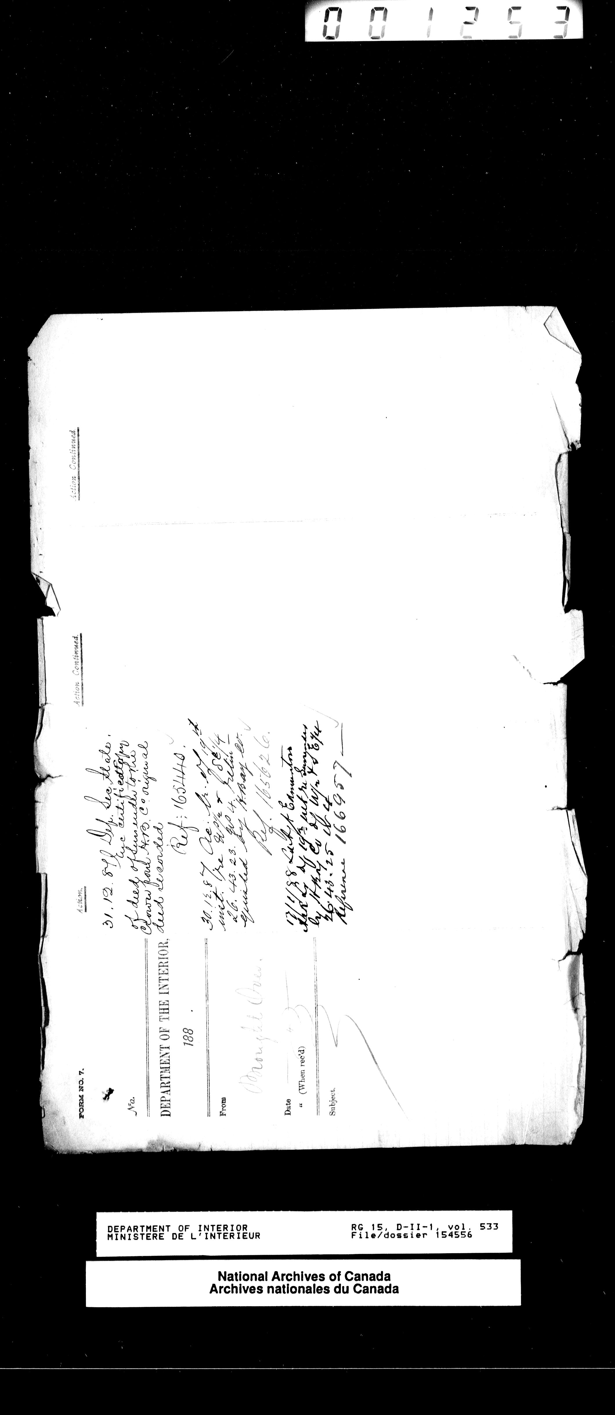 Central registry subject files created by the Dominion Lands Branch - 13792