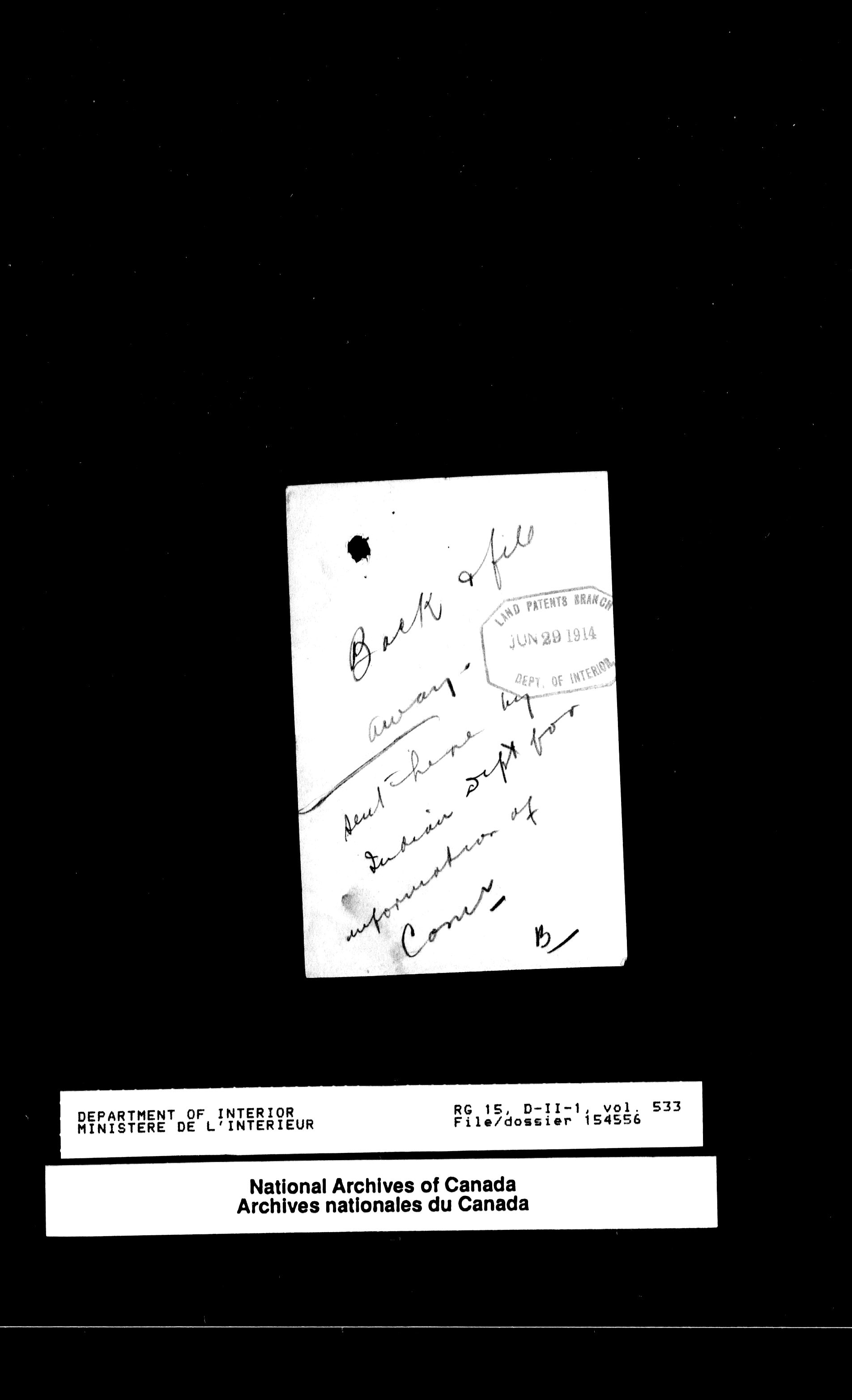 Central registry subject files created by the Dominion Lands Branch - 13792