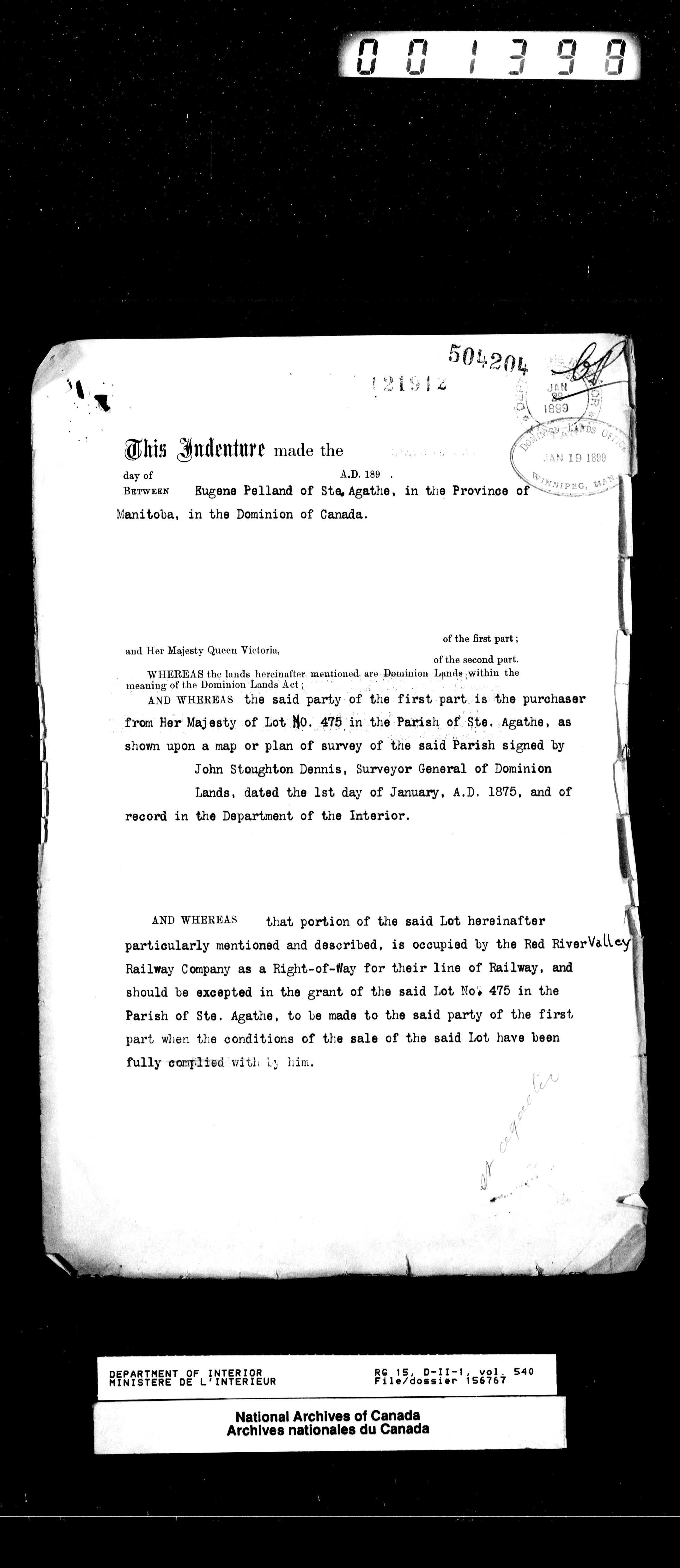Central registry subject files created by the Dominion Lands Branch - 13796
