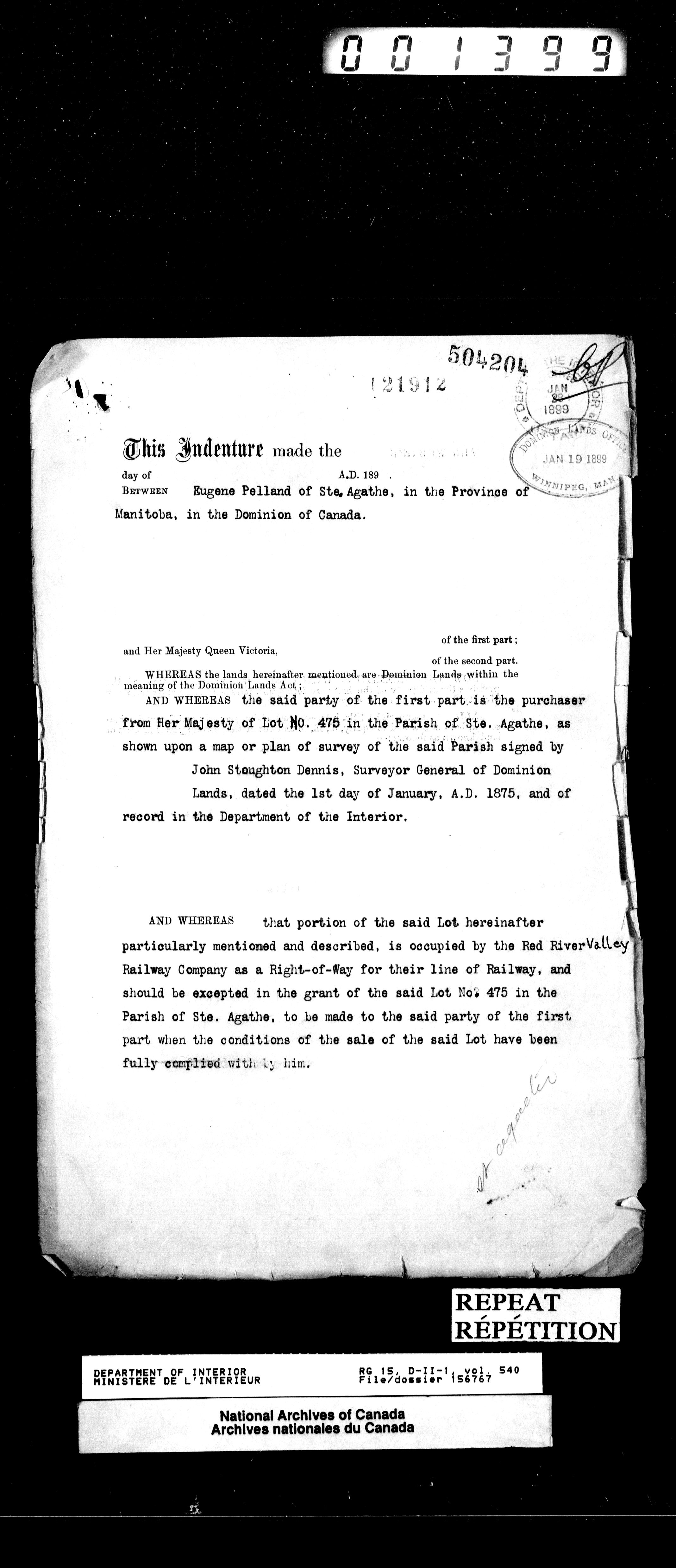 Central registry subject files created by the Dominion Lands Branch - 13796