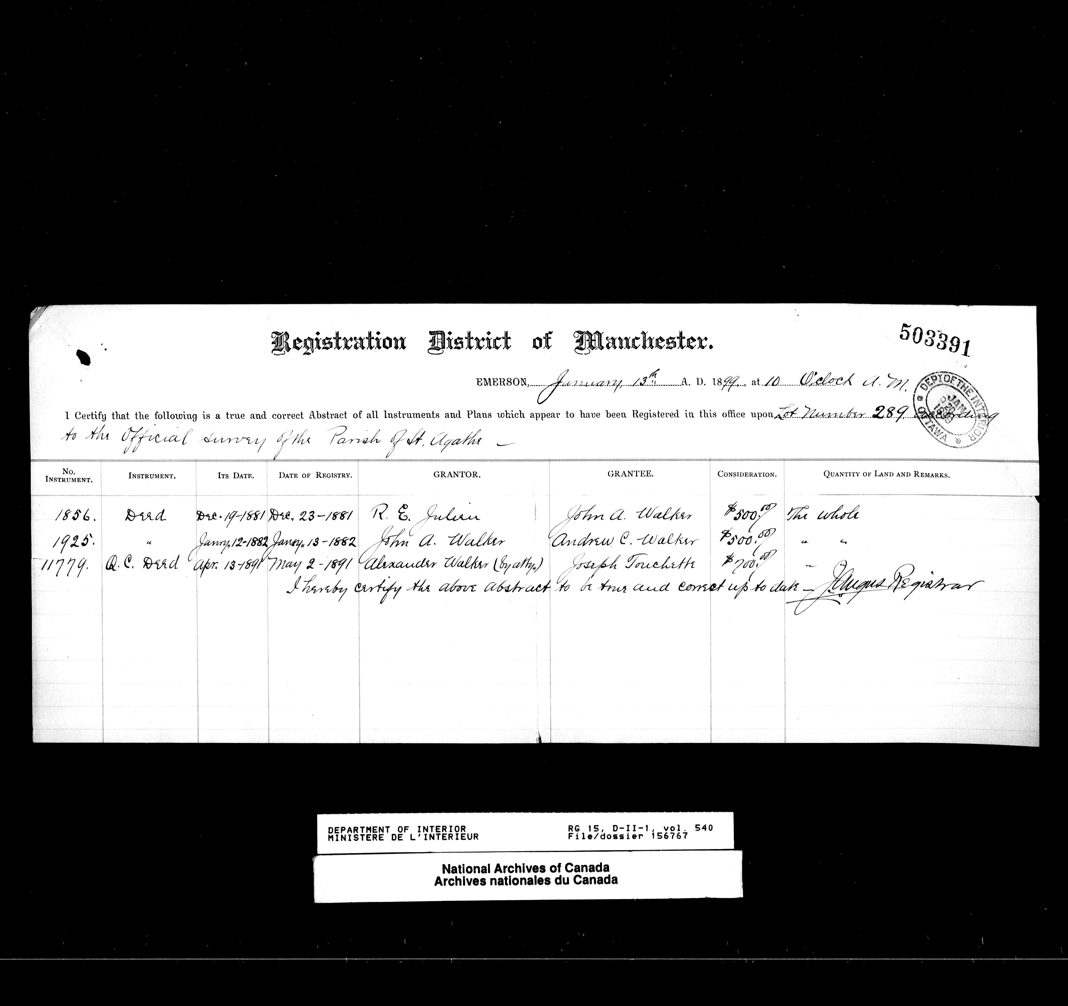 Central registry subject files created by the Dominion Lands Branch - 13796