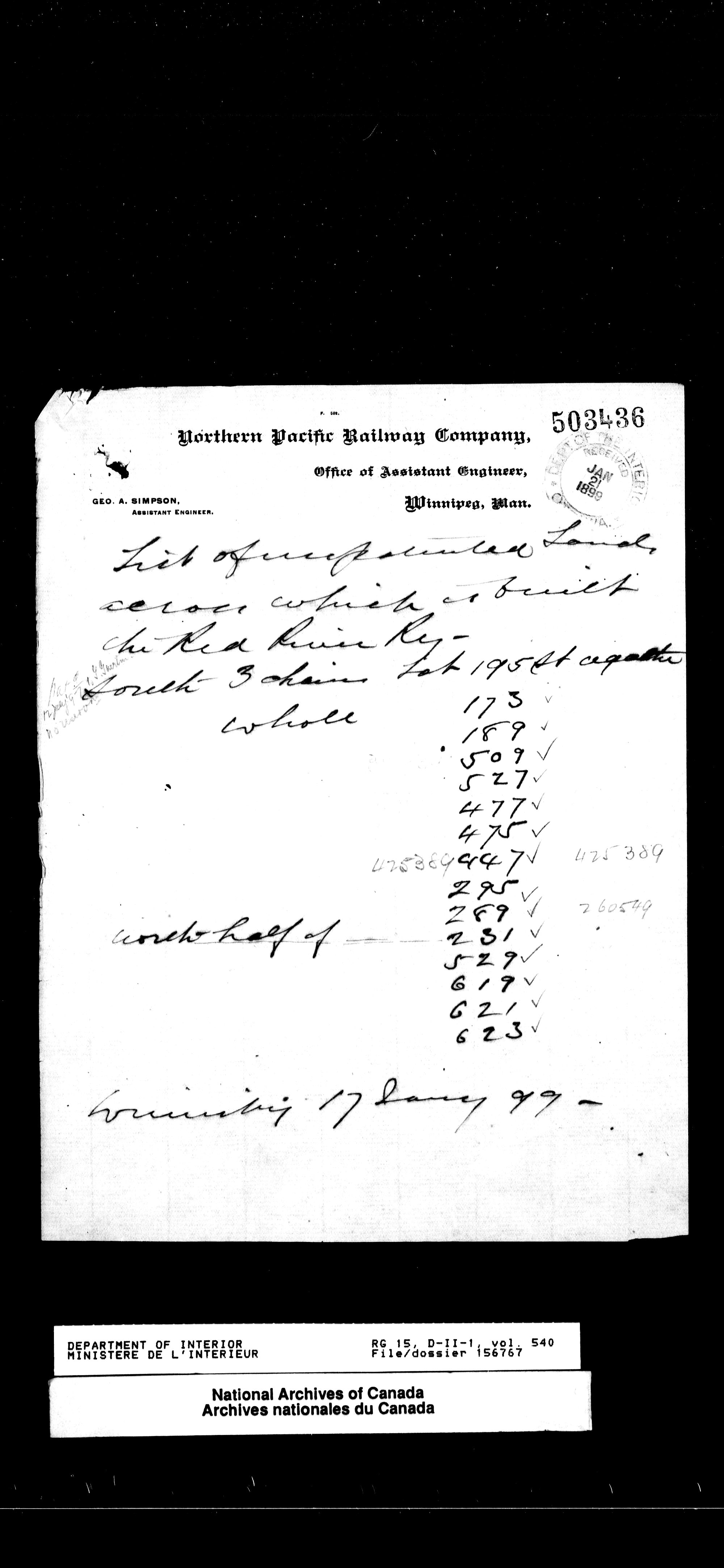 Central registry subject files created by the Dominion Lands Branch - 13796
