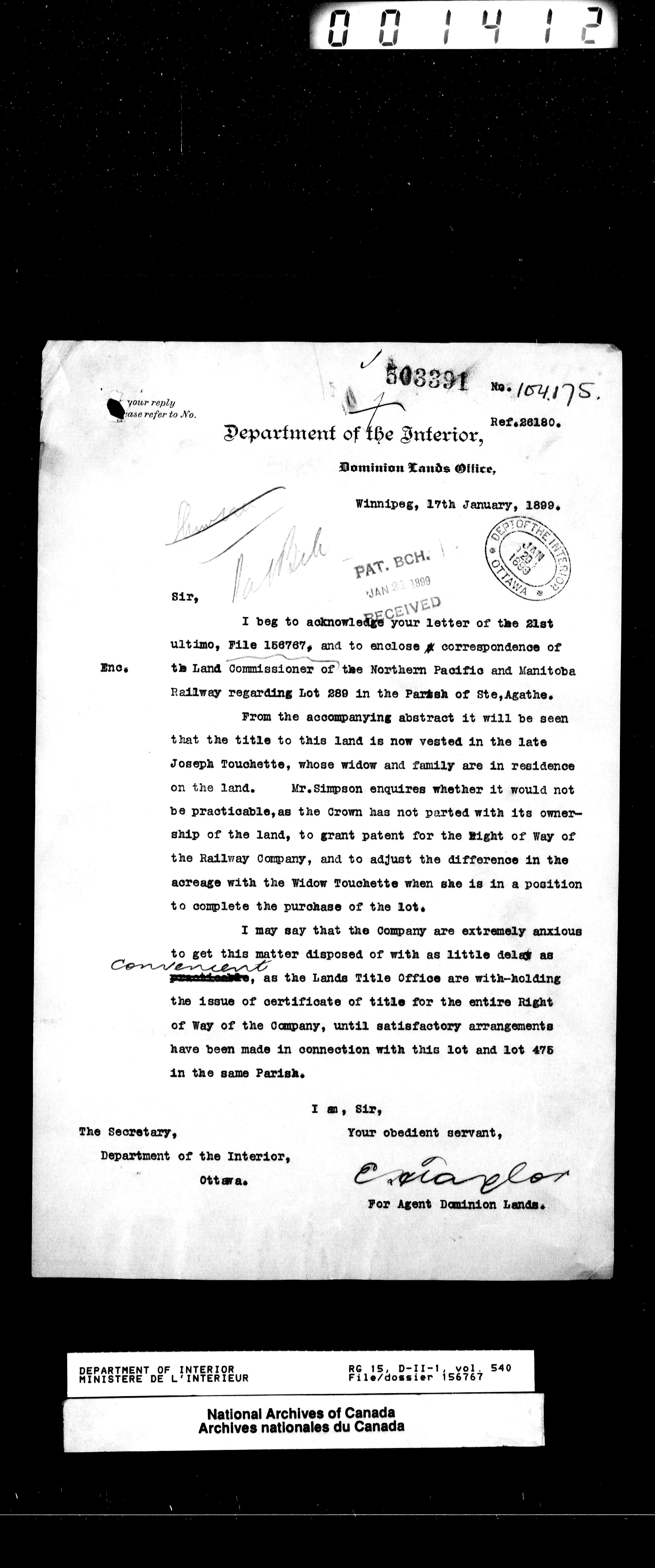 Central registry subject files created by the Dominion Lands Branch - 13796