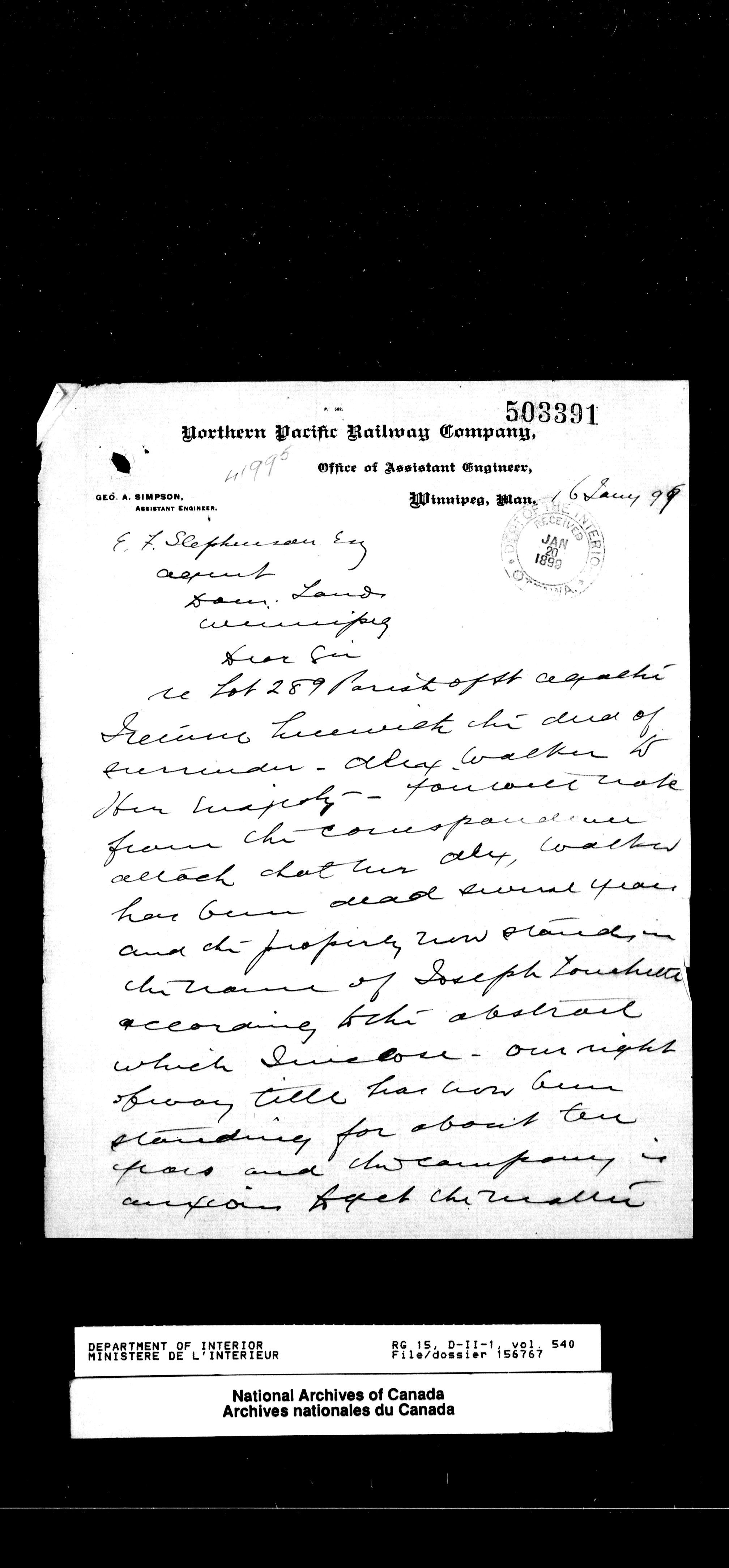 Central registry subject files created by the Dominion Lands Branch - 13796