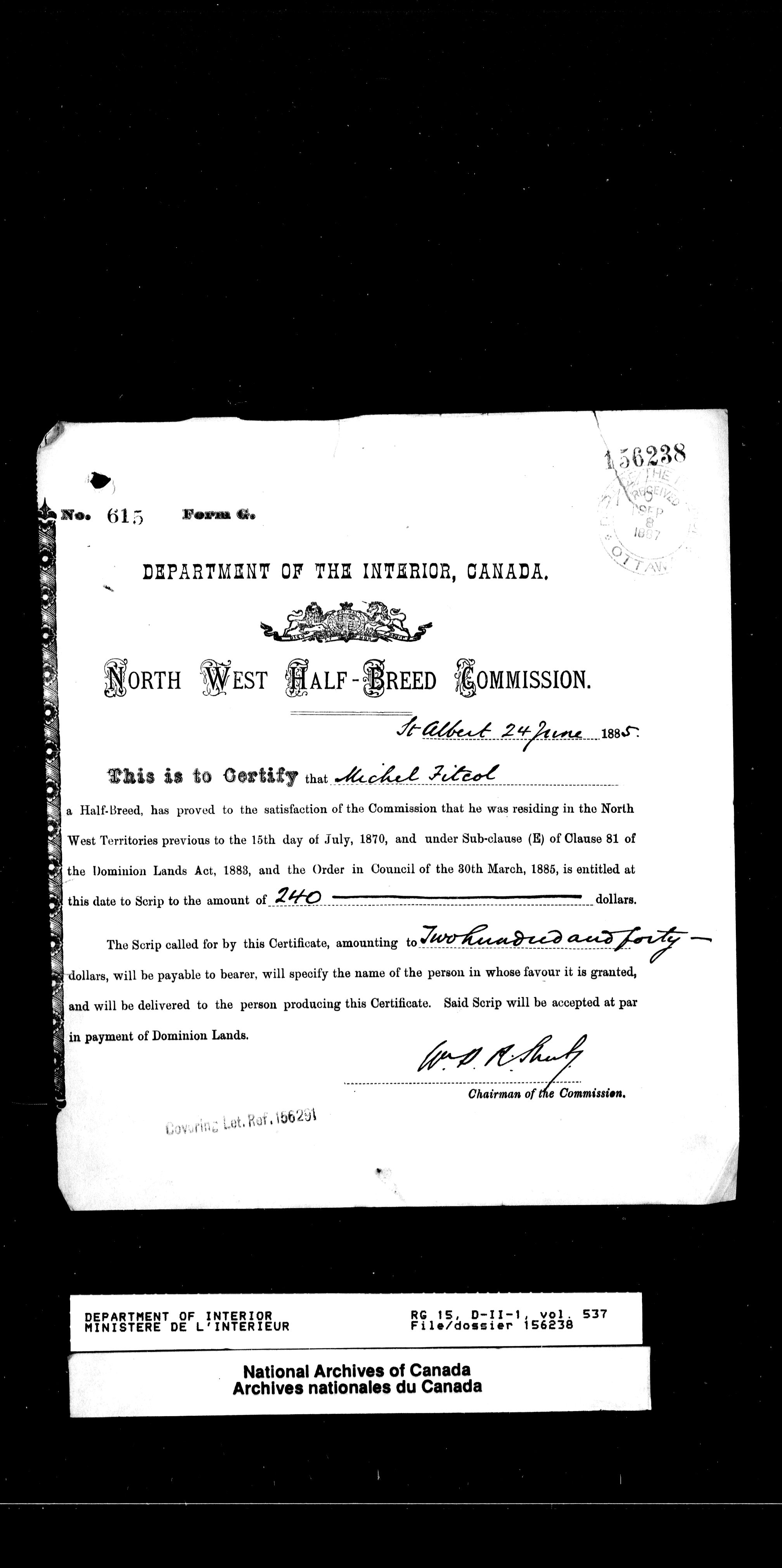 Central registry subject files created by the Dominion Lands Branch - 13796