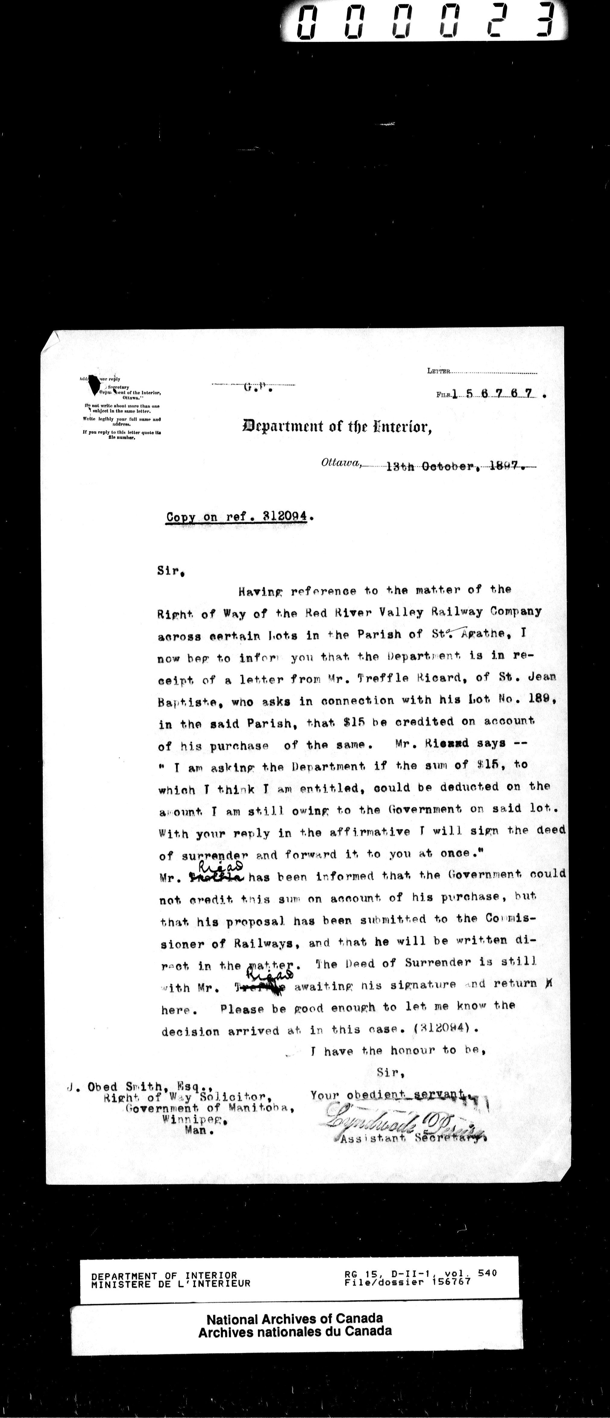 Central registry subject files created by the Dominion Lands Branch - 13797