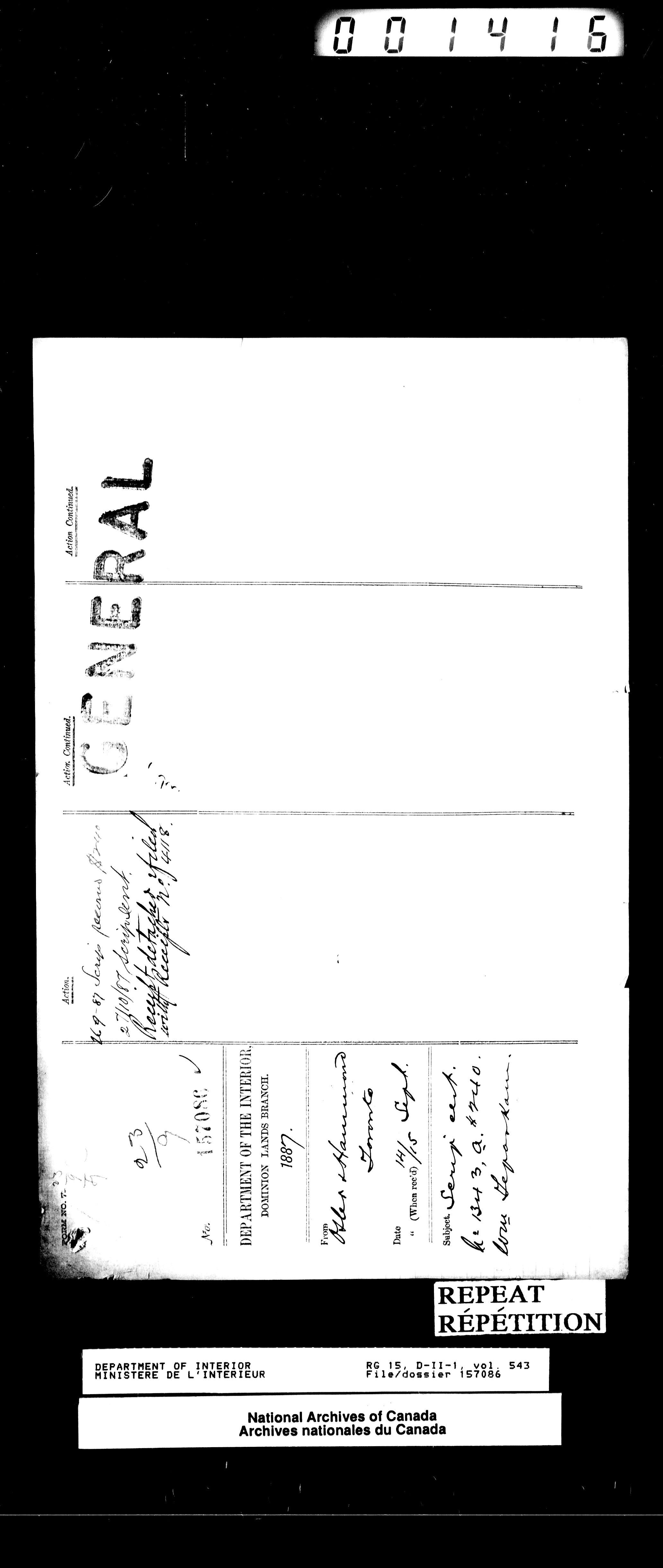 Central registry subject files created by the Dominion Lands Branch - 13798