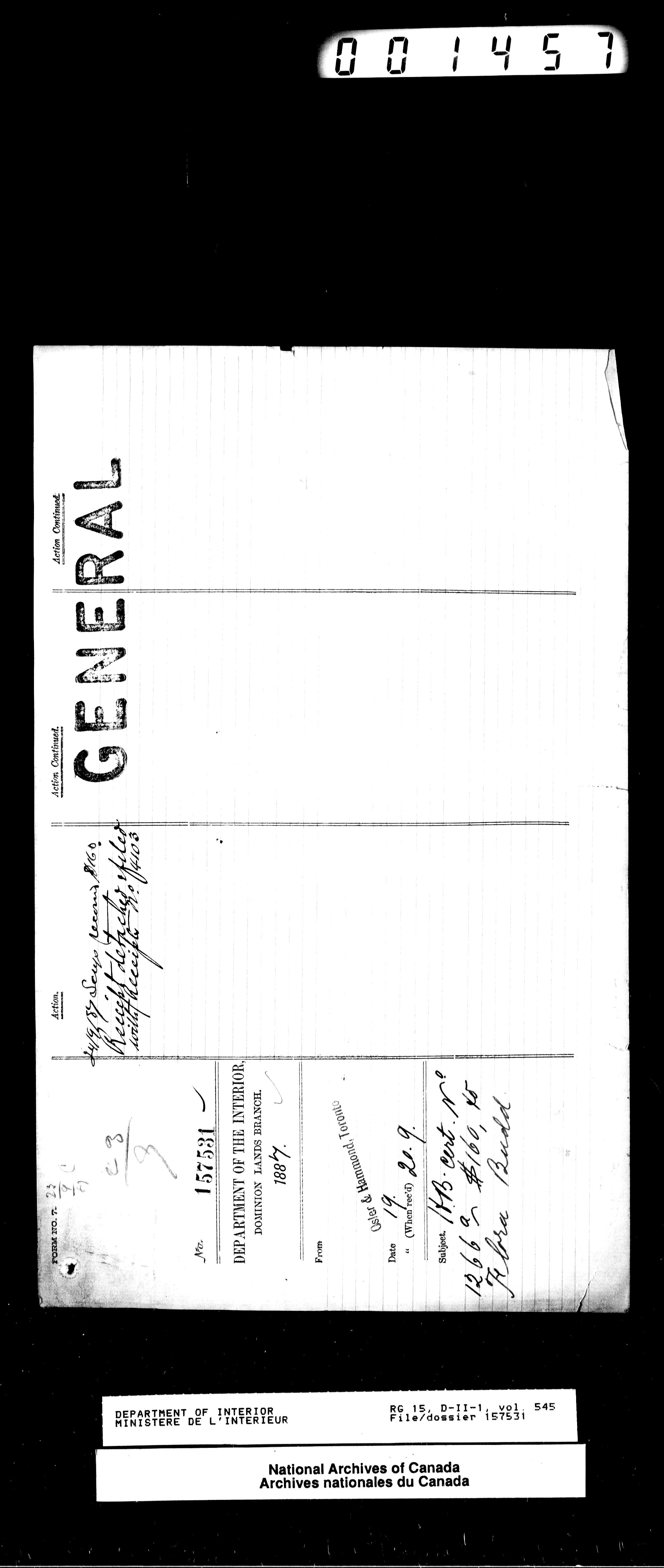 Central registry subject files created by the Dominion Lands Branch - 13799