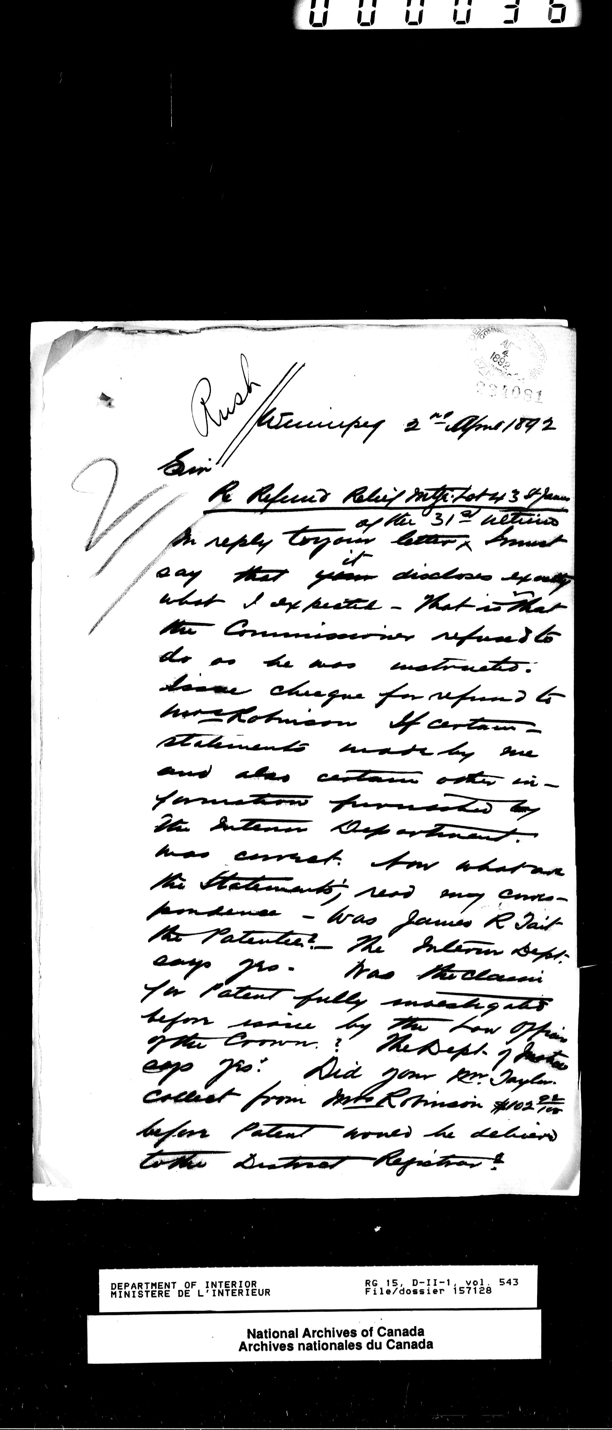 Central registry subject files created by the Dominion Lands Branch - 13799