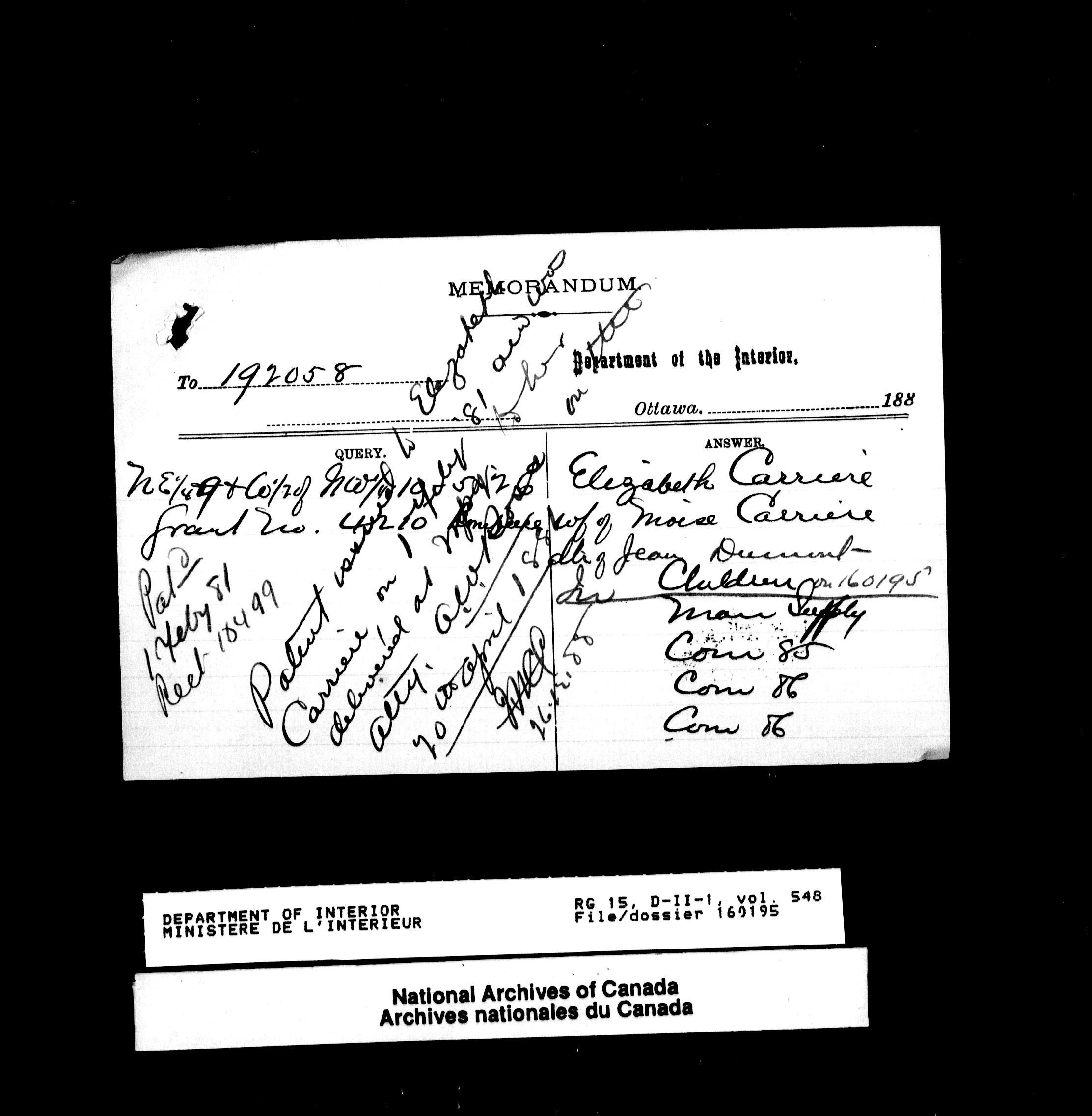 Central registry subject files created by the Dominion Lands Branch - 13801