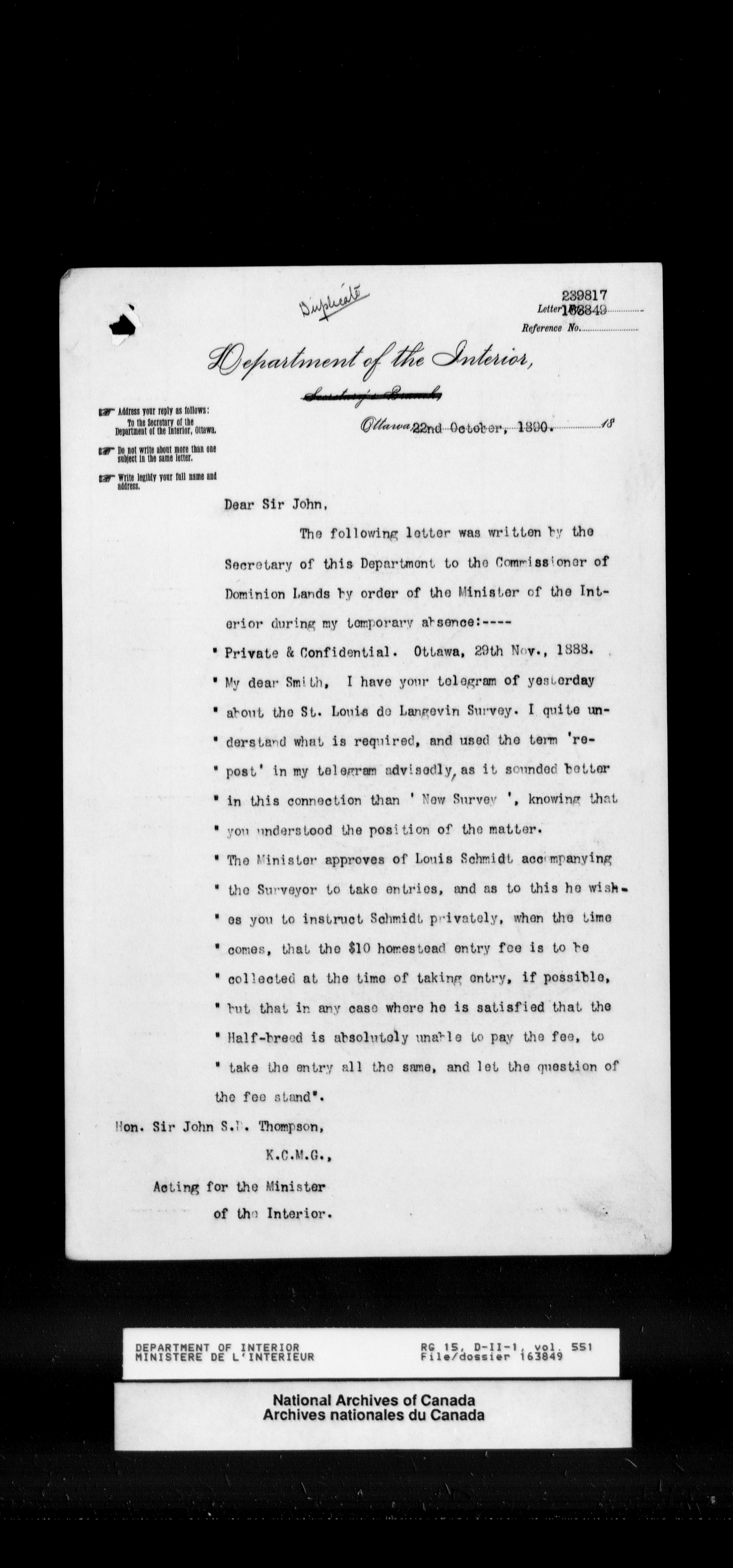 Central registry subject files created by the Dominion Lands Branch - 13804