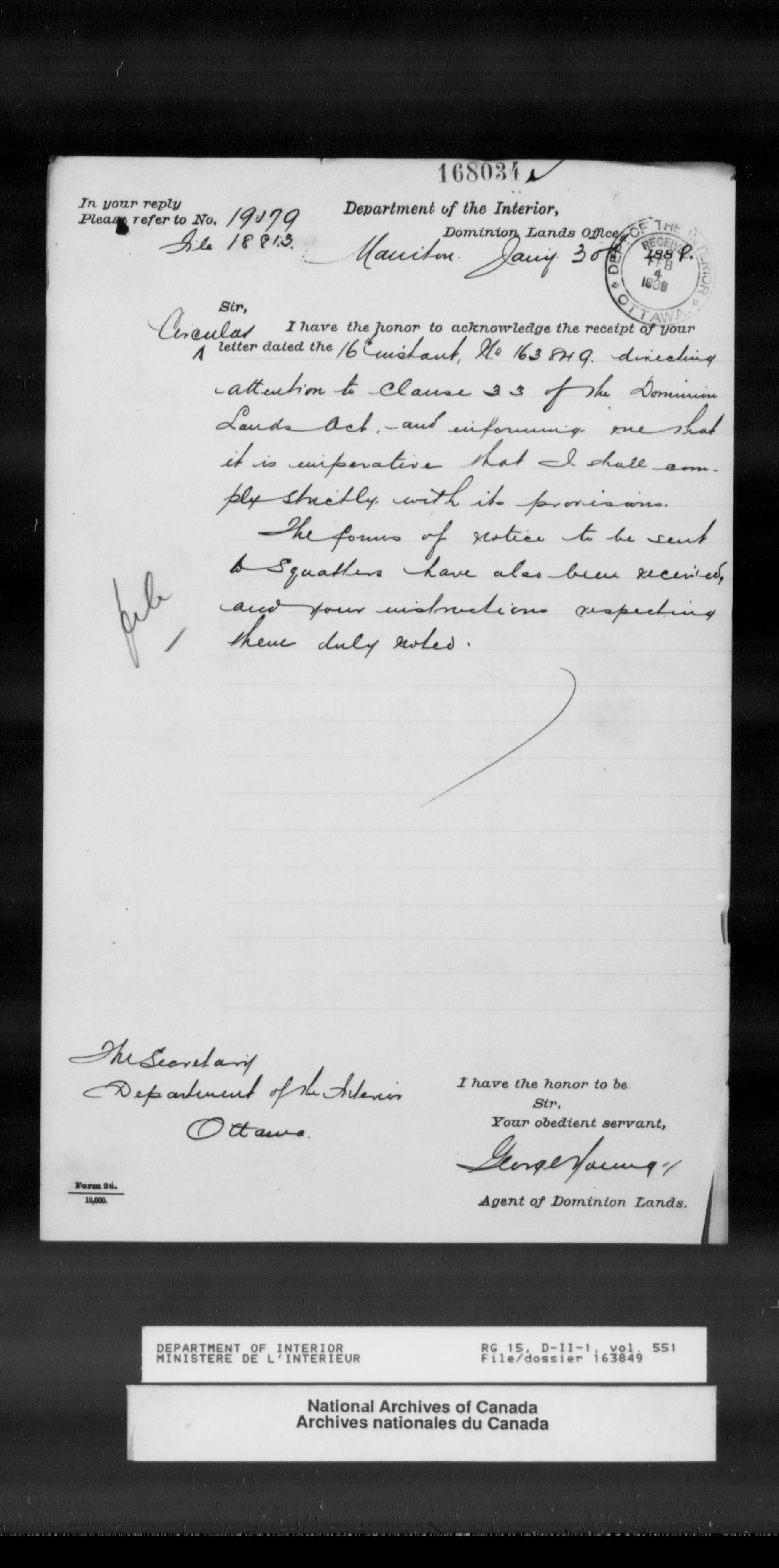 Central registry subject files created by the Dominion Lands Branch - 13805