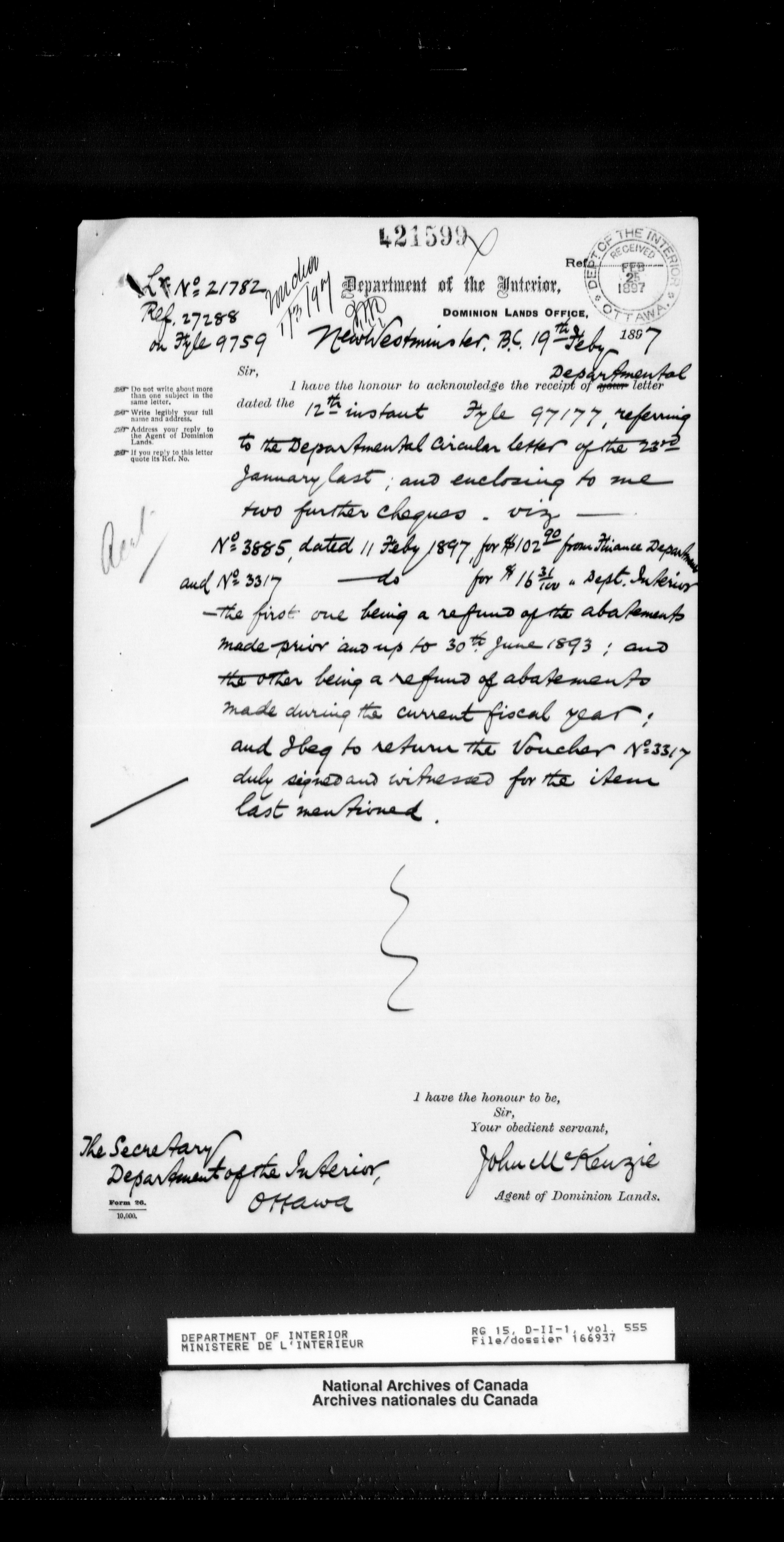 Central registry subject files created by the Dominion Lands Branch - 13807