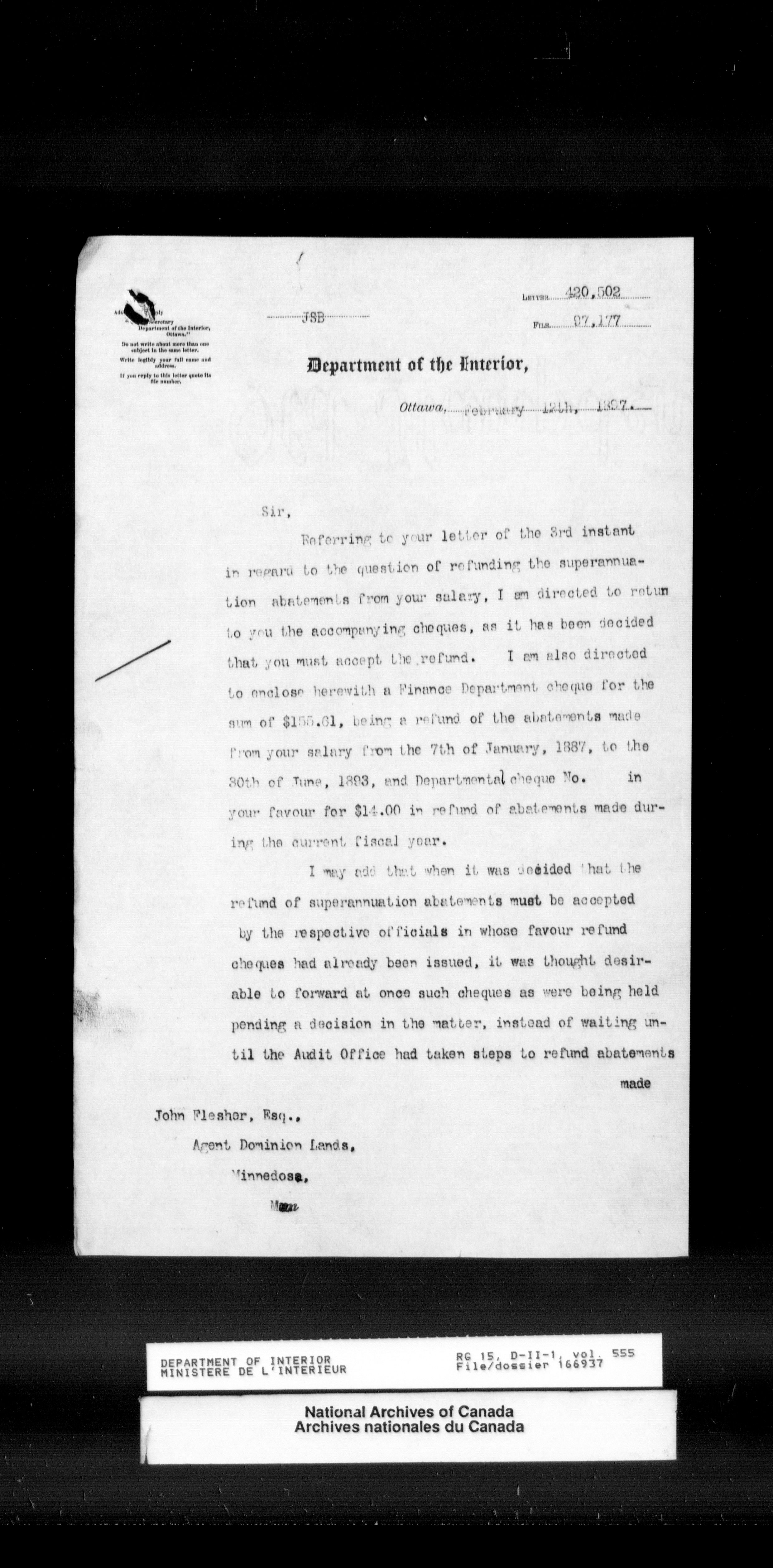 Central registry subject files created by the Dominion Lands Branch - 13807
