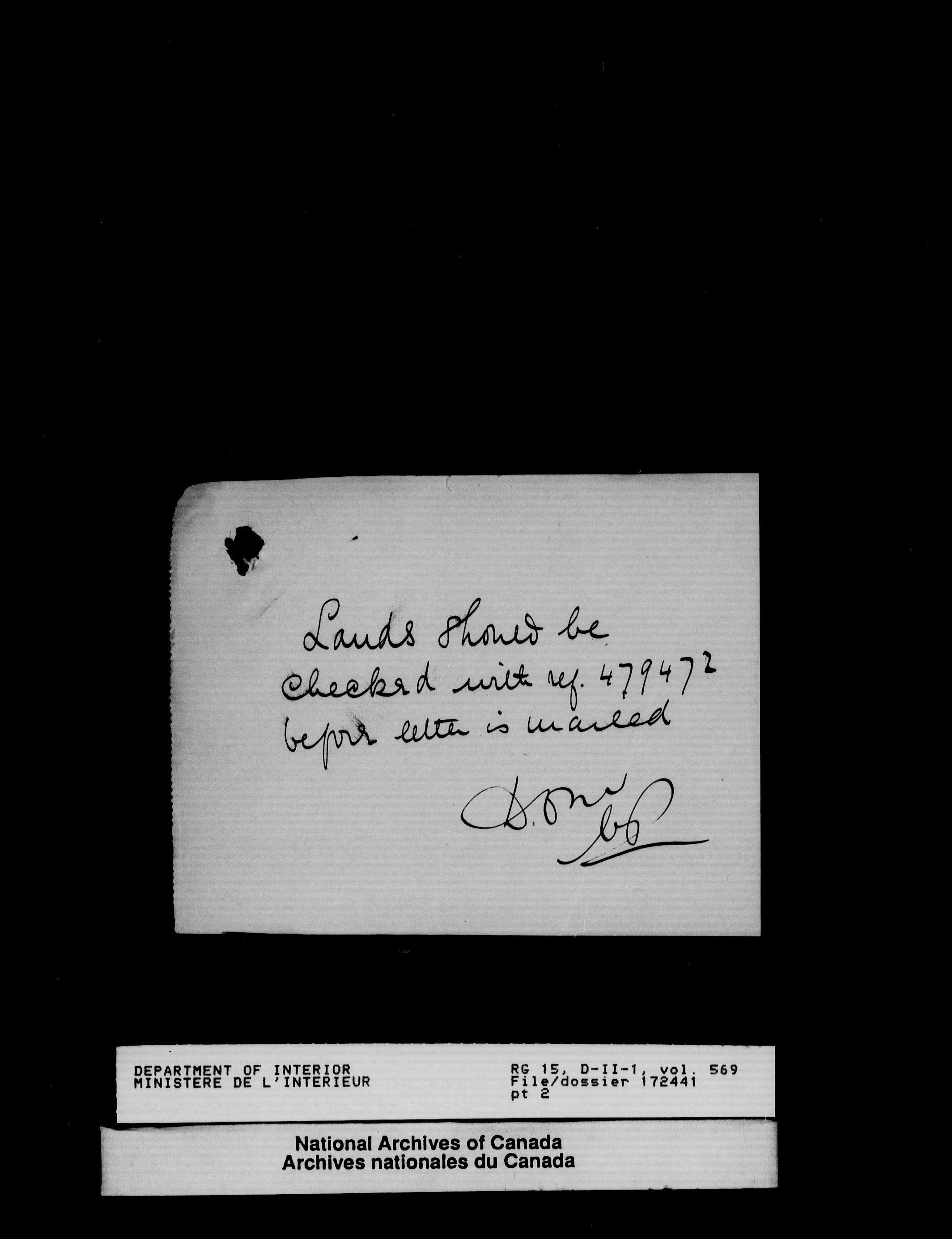 Central registry subject files created by the Dominion Lands Branch - 13821