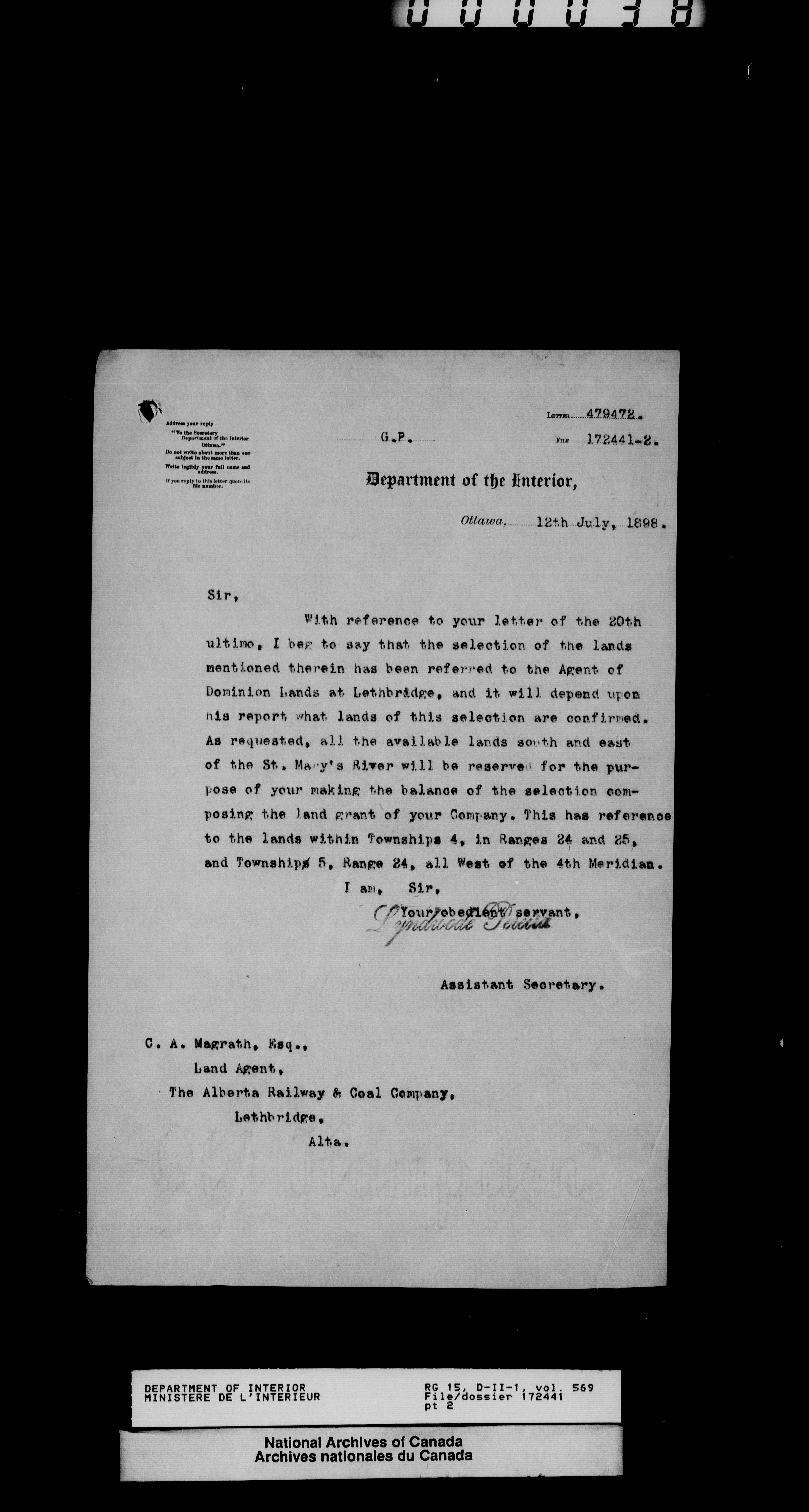 Central registry subject files created by the Dominion Lands Branch - 13821