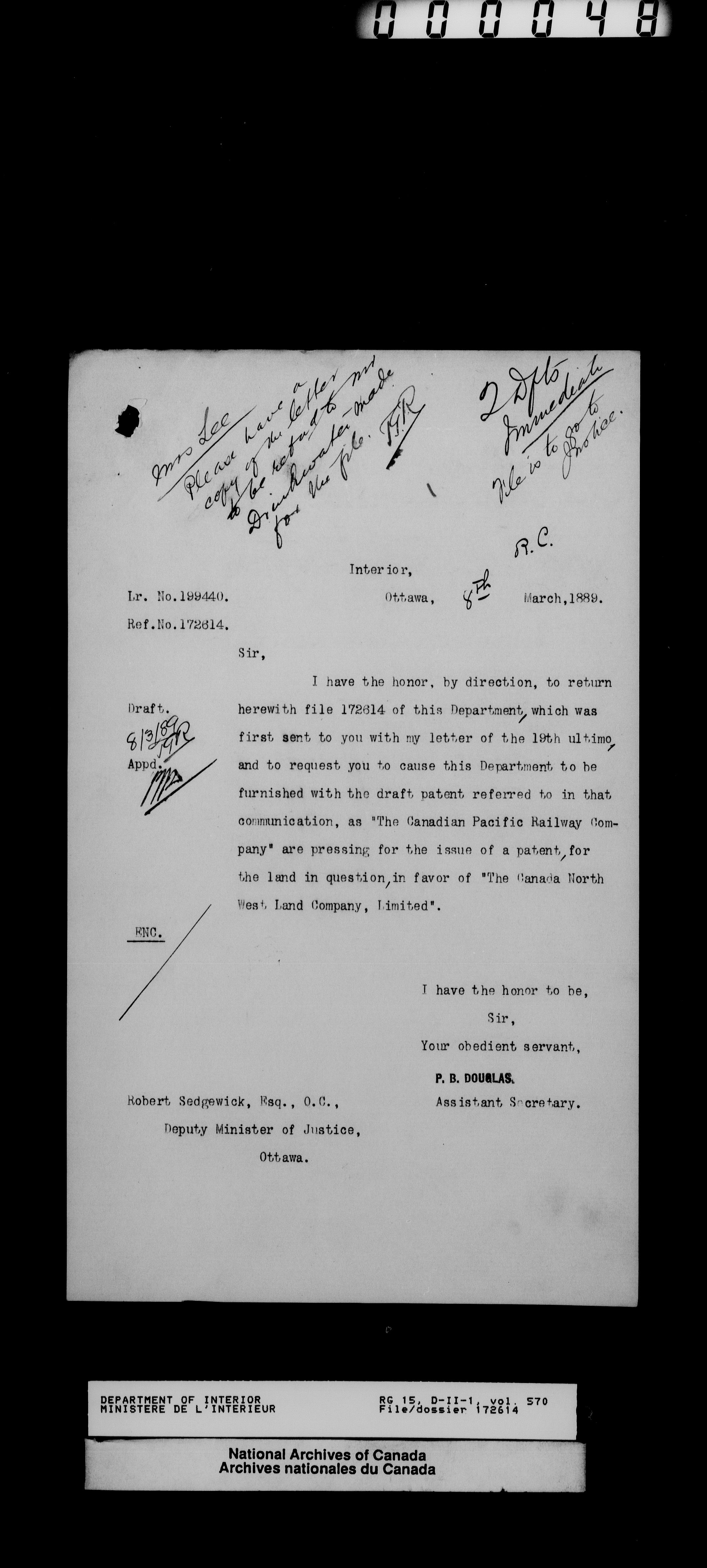 Central registry subject files created by the Dominion Lands Branch - 13822