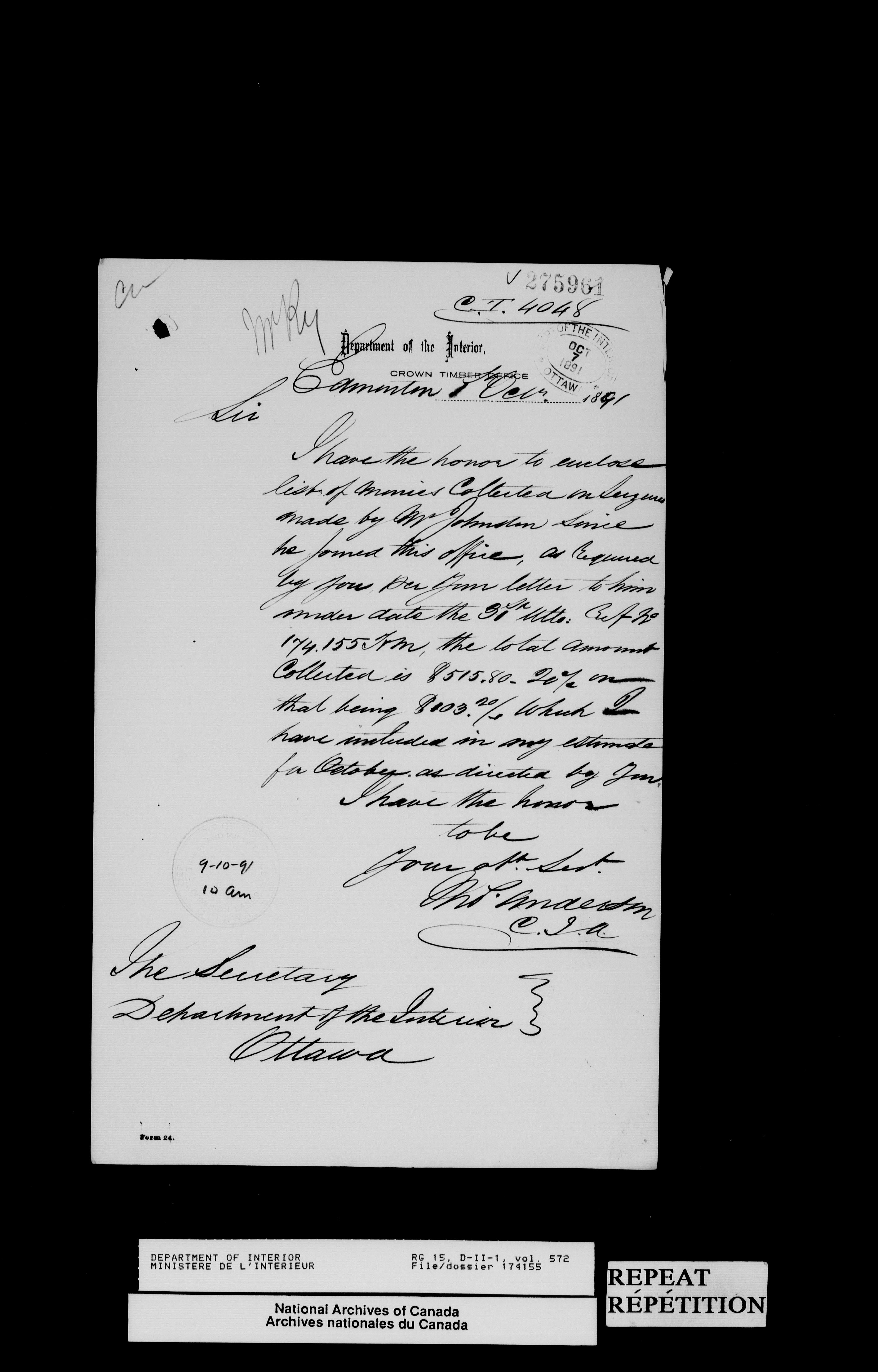 Central registry subject files created by the Dominion Lands Branch - 13823