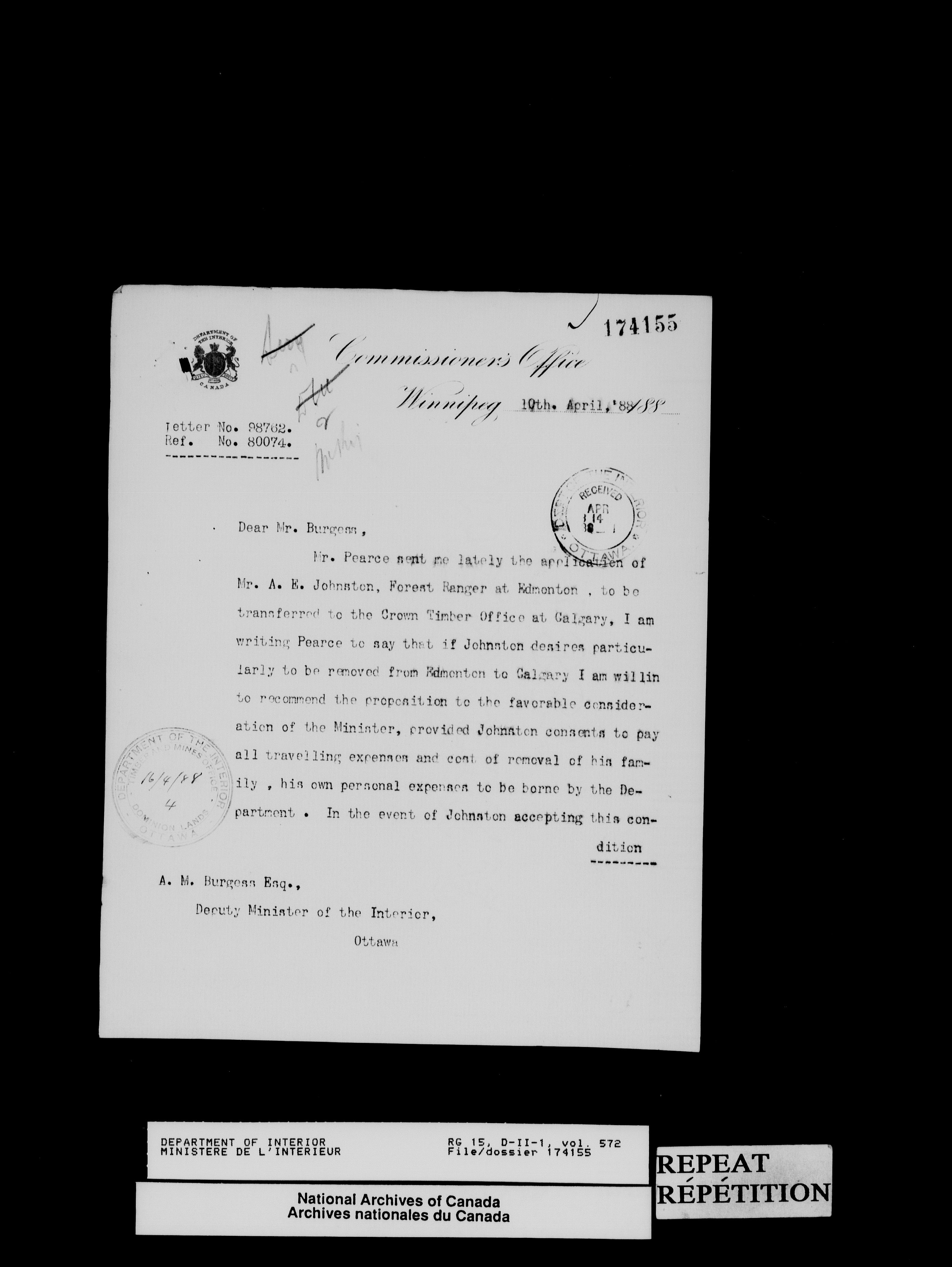 Central registry subject files created by the Dominion Lands Branch - 13823
