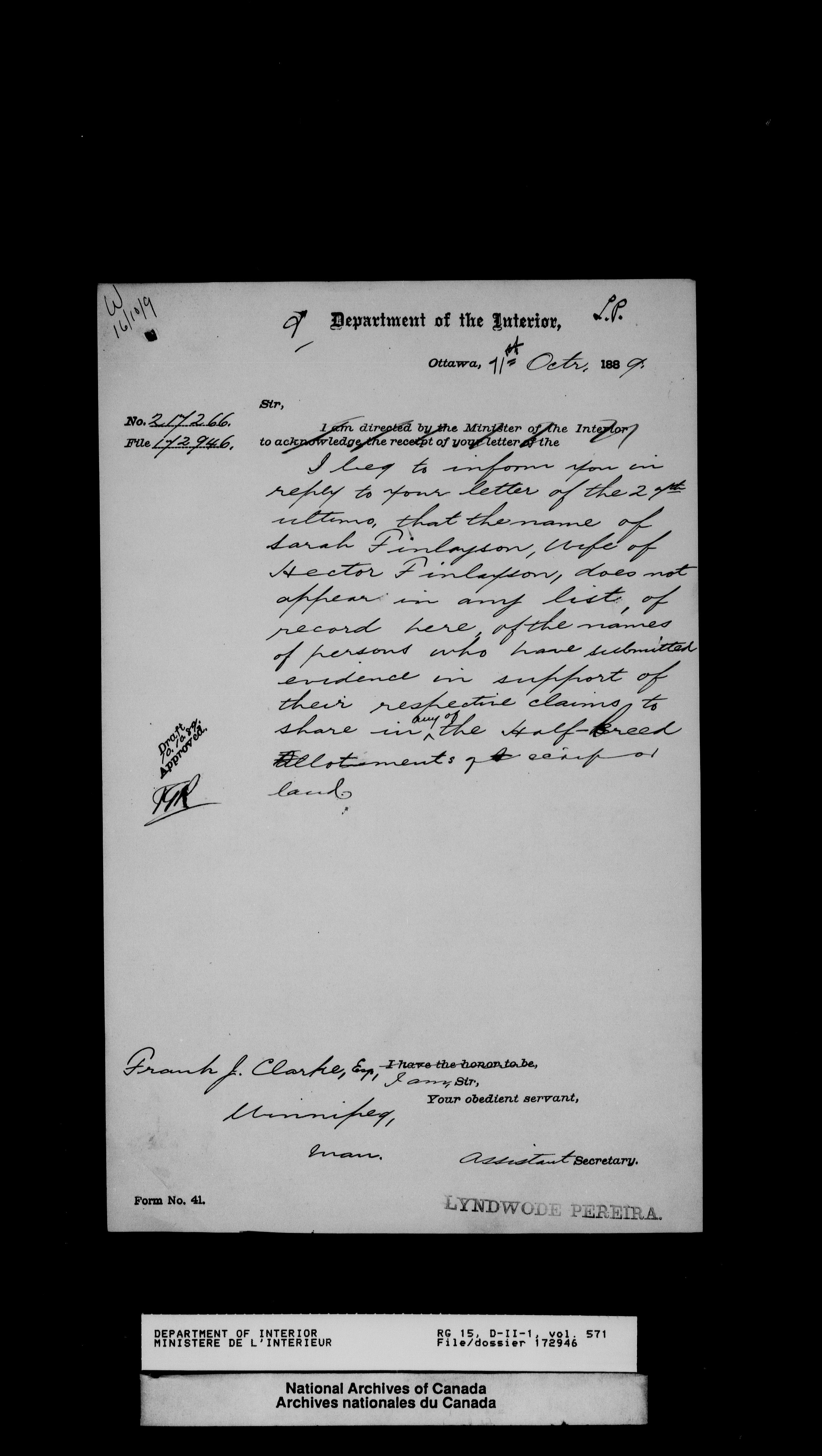 Central registry subject files created by the Dominion Lands Branch - 13823