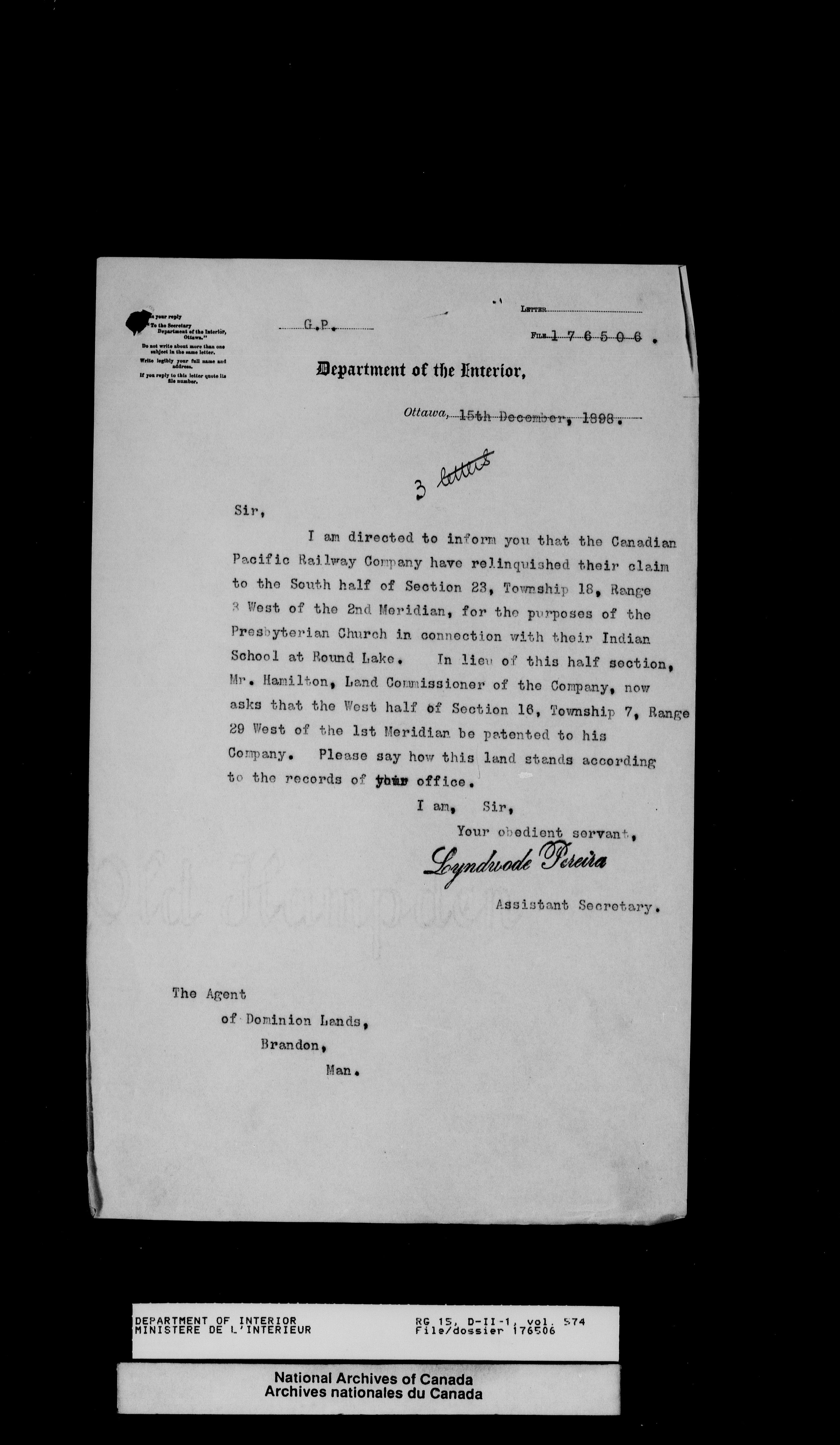 Central registry subject files created by the Dominion Lands Branch - 13825