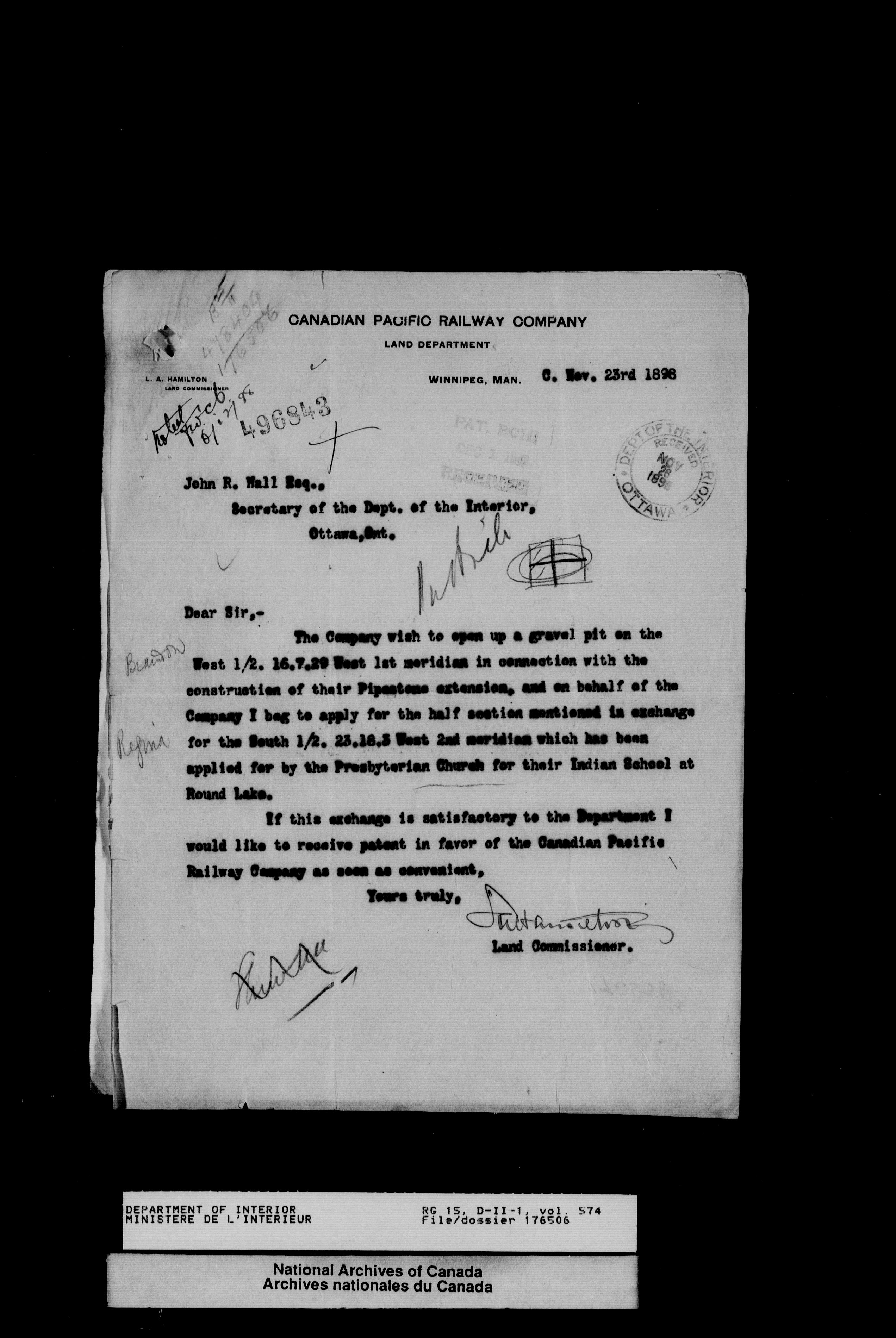 Central registry subject files created by the Dominion Lands Branch - 13825
