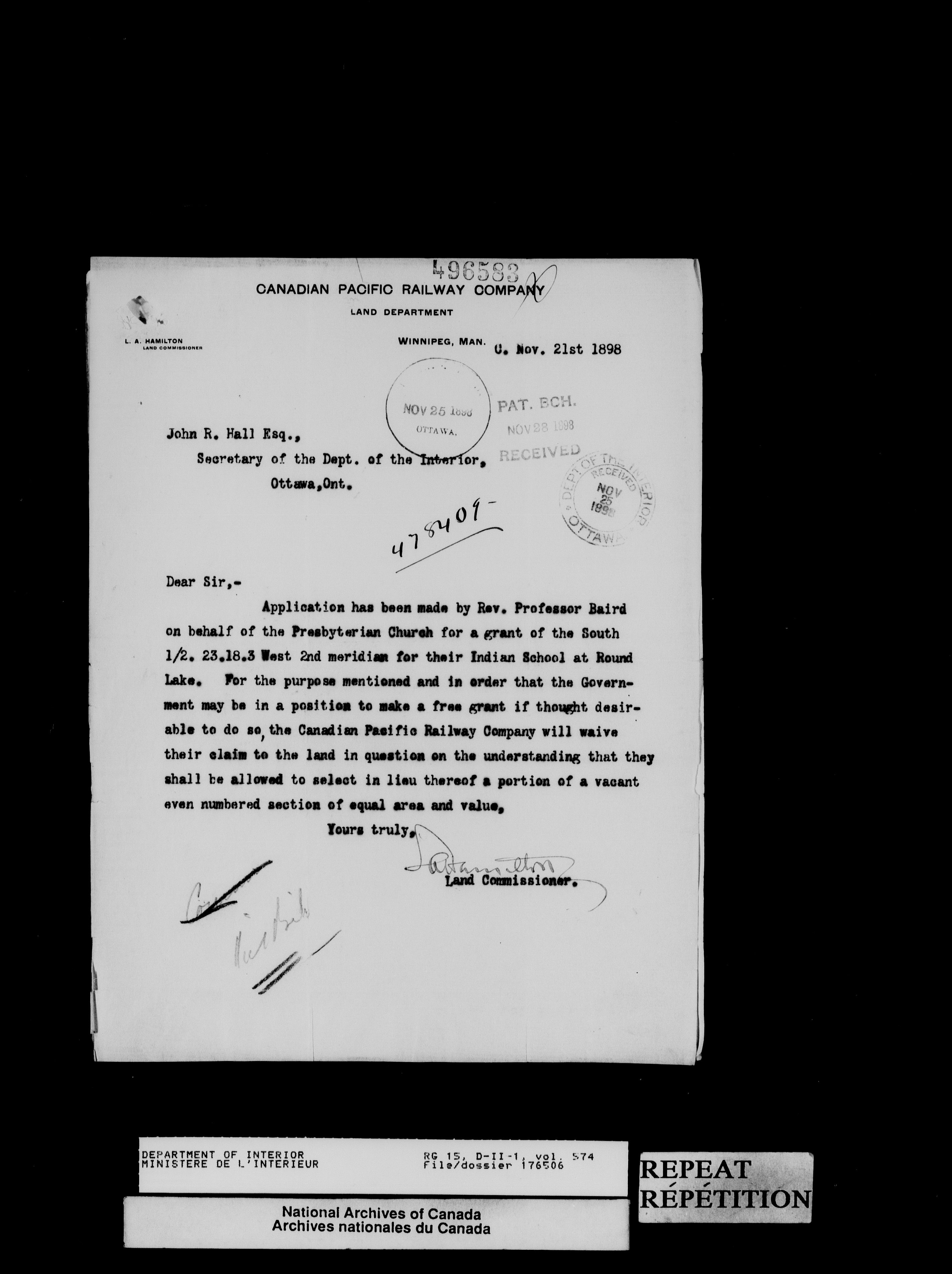 Central registry subject files created by the Dominion Lands Branch - 13825