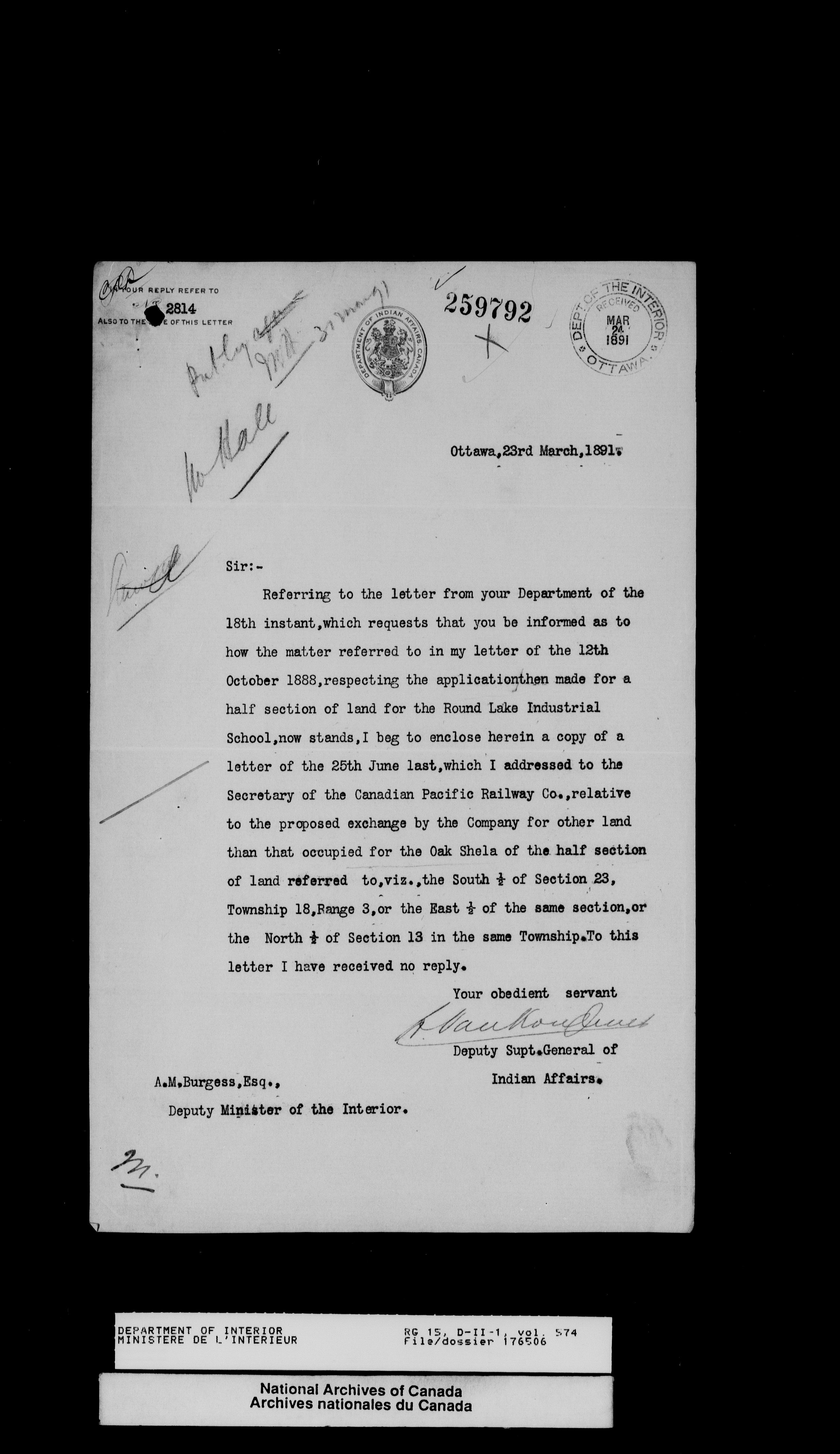 Central registry subject files created by the Dominion Lands Branch - 13825