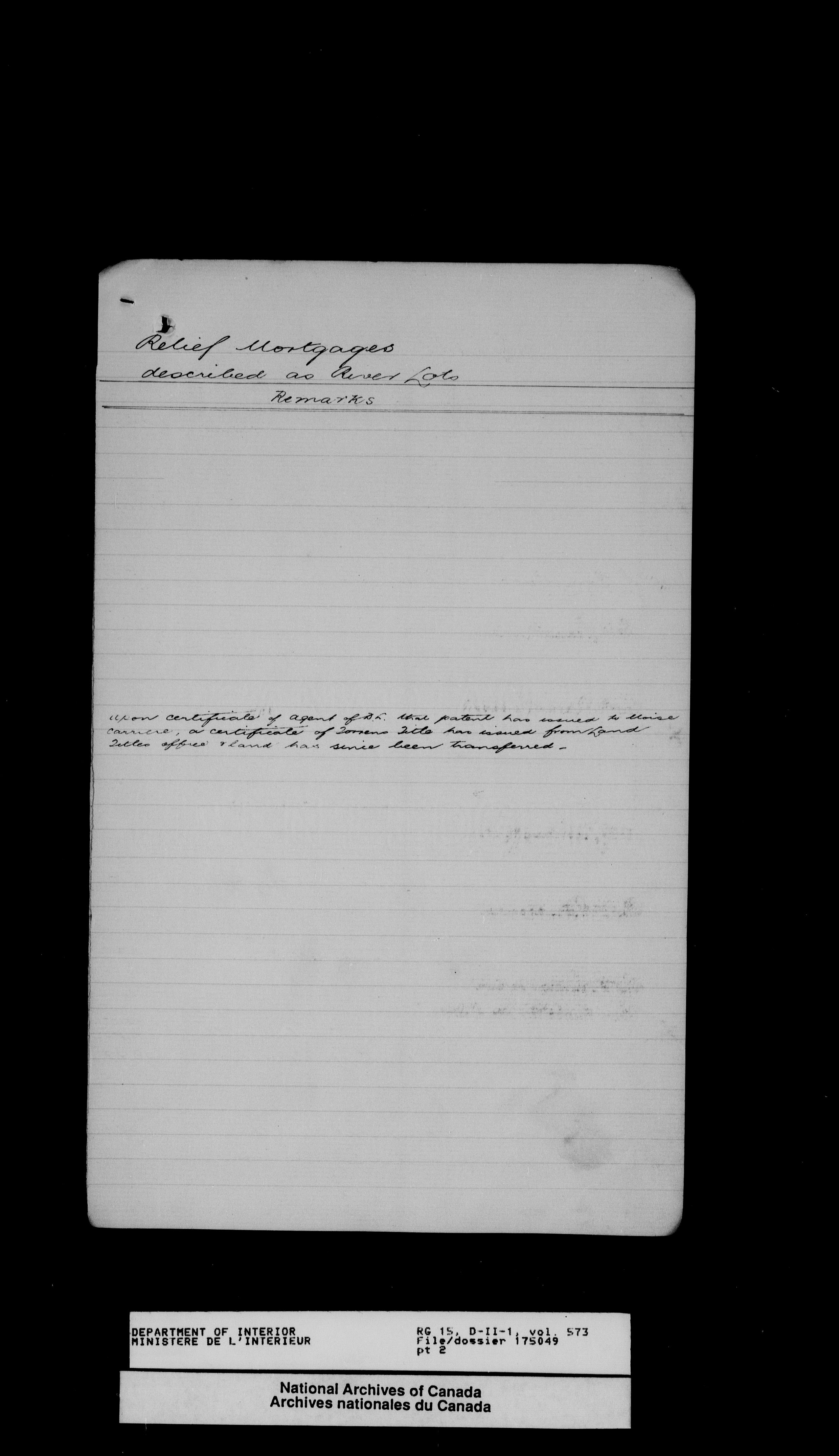 Central registry subject files created by the Dominion Lands Branch - 13825