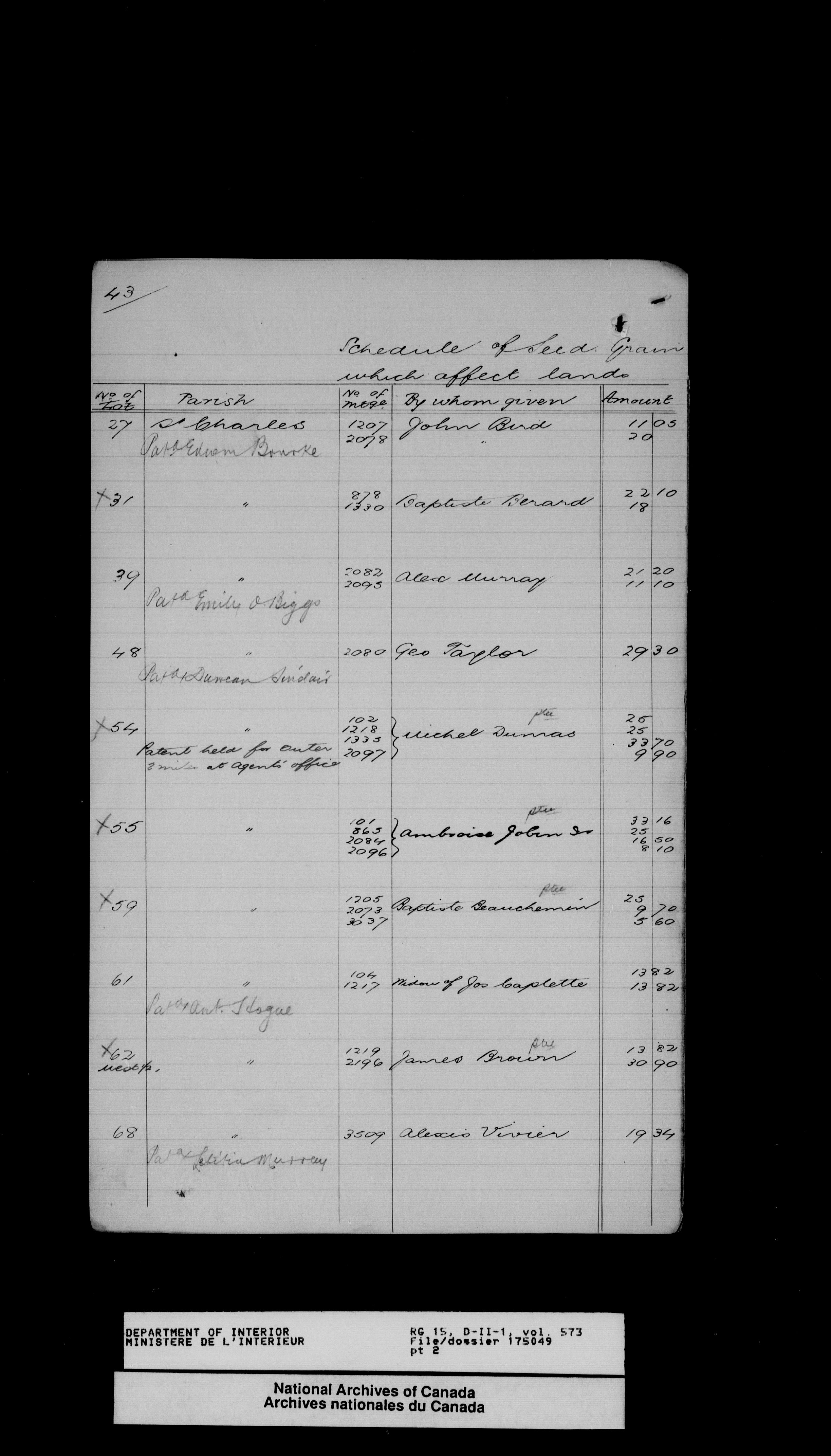 Central registry subject files created by the Dominion Lands Branch - 13825