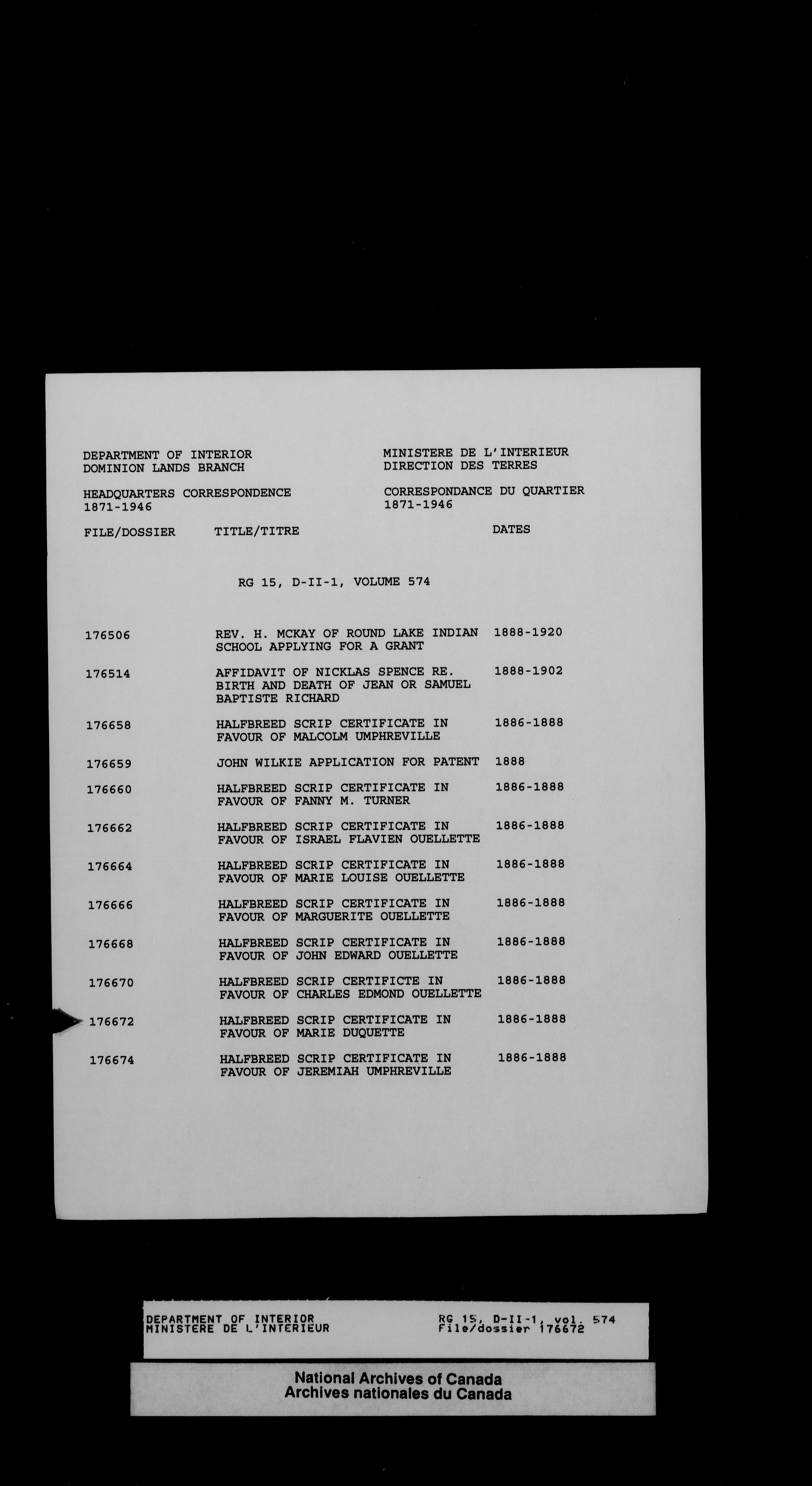 Central registry subject files created by the Dominion Lands Branch - 13826