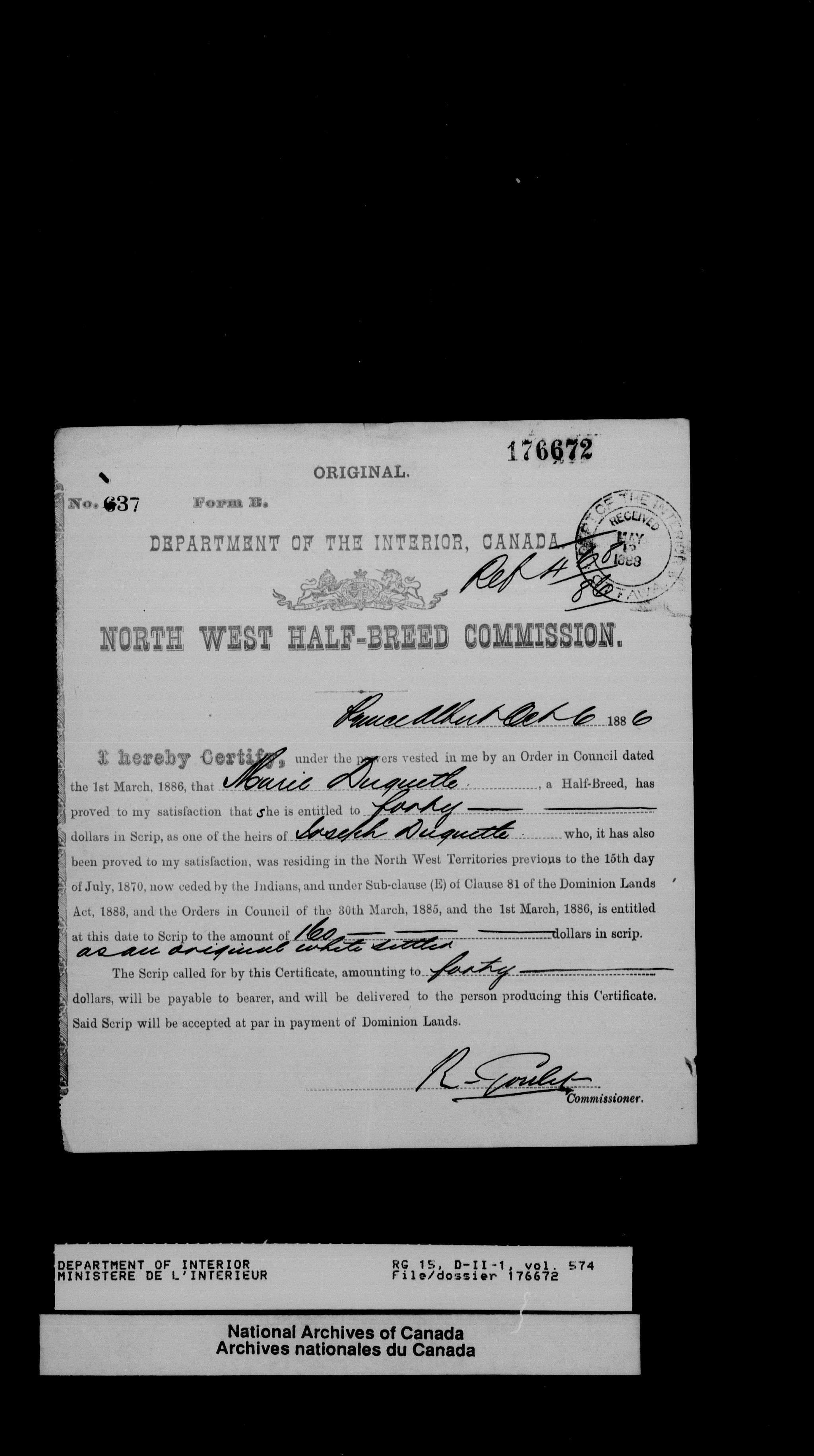 Central registry subject files created by the Dominion Lands Branch - 13826
