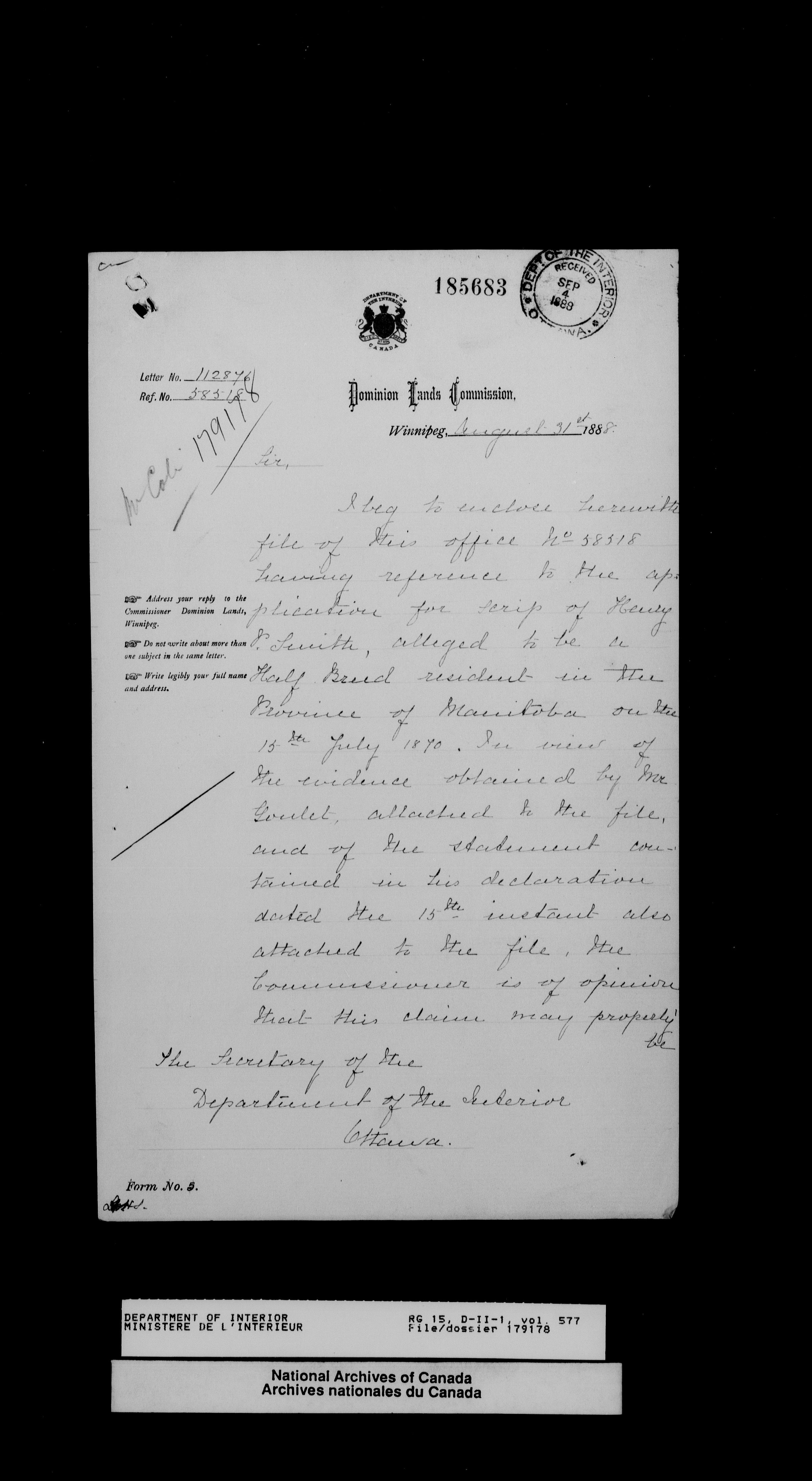 Central registry subject files created by the Dominion Lands Branch - 13827